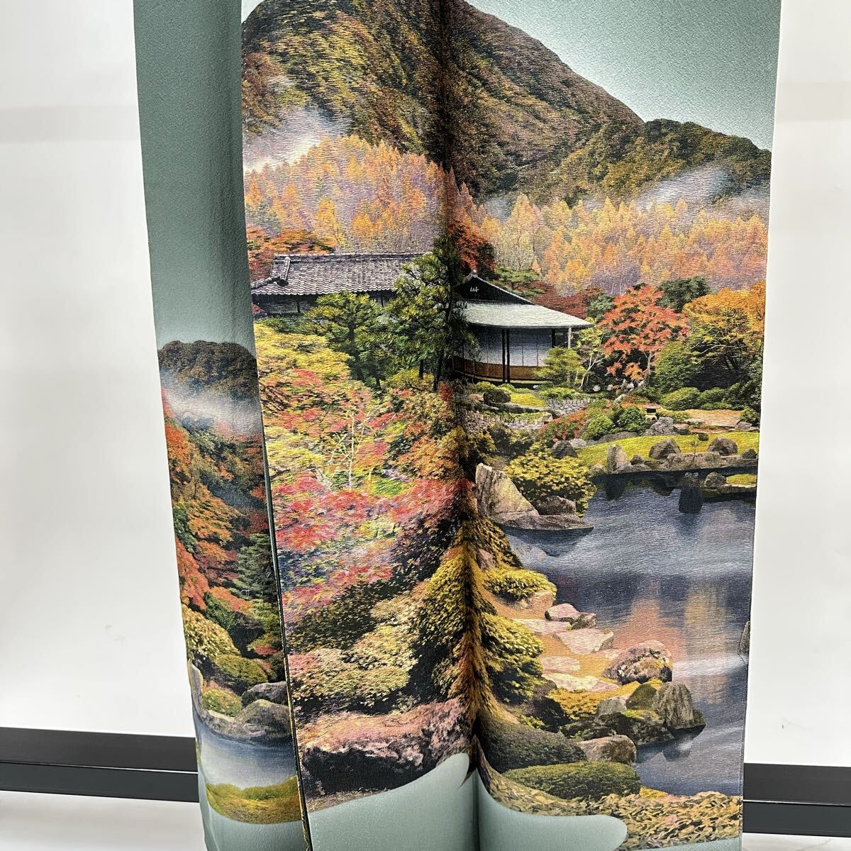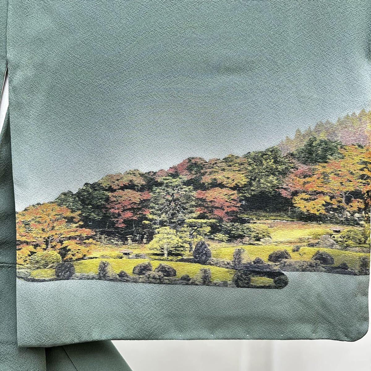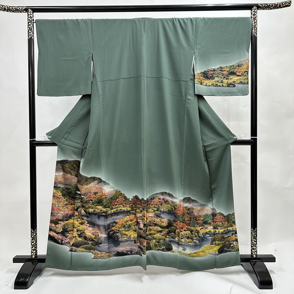 【七福】c727 訪問着 刺繍 正絹 袷仕立て 細密刺繍 乱針刺繍 絵画の様な刺繍 風景画 着物 逸品 身丈 約159cm 裄 約66cm