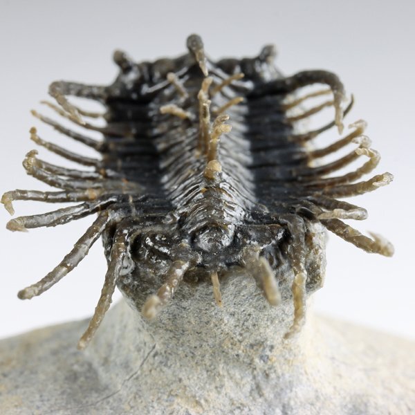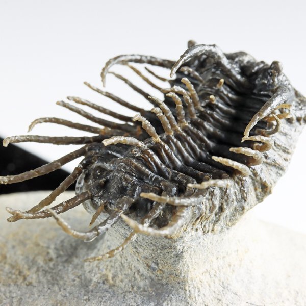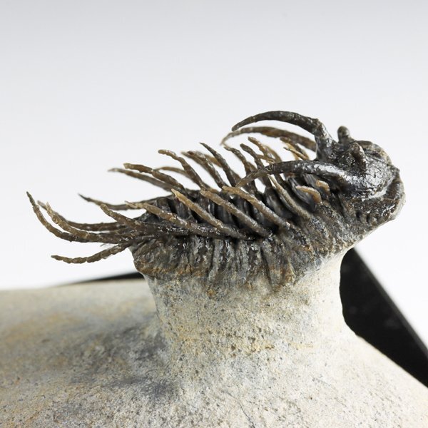 近年このKoneprusiaと呼ばれる三葉虫は、その産地の枯渇により採取される事が少なく成って来ました。 今回の個体は御覧の通り複眼まで良く保存された良質な標本です。