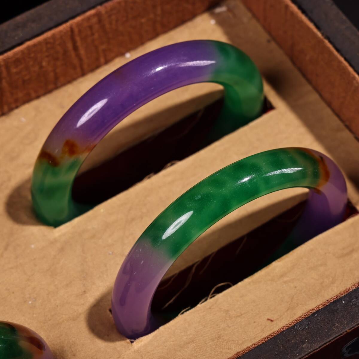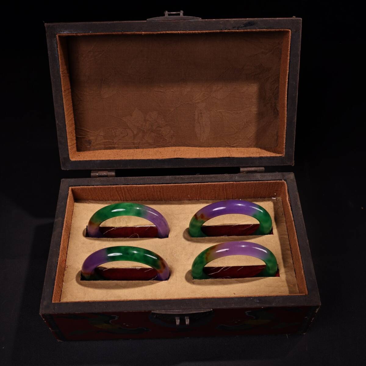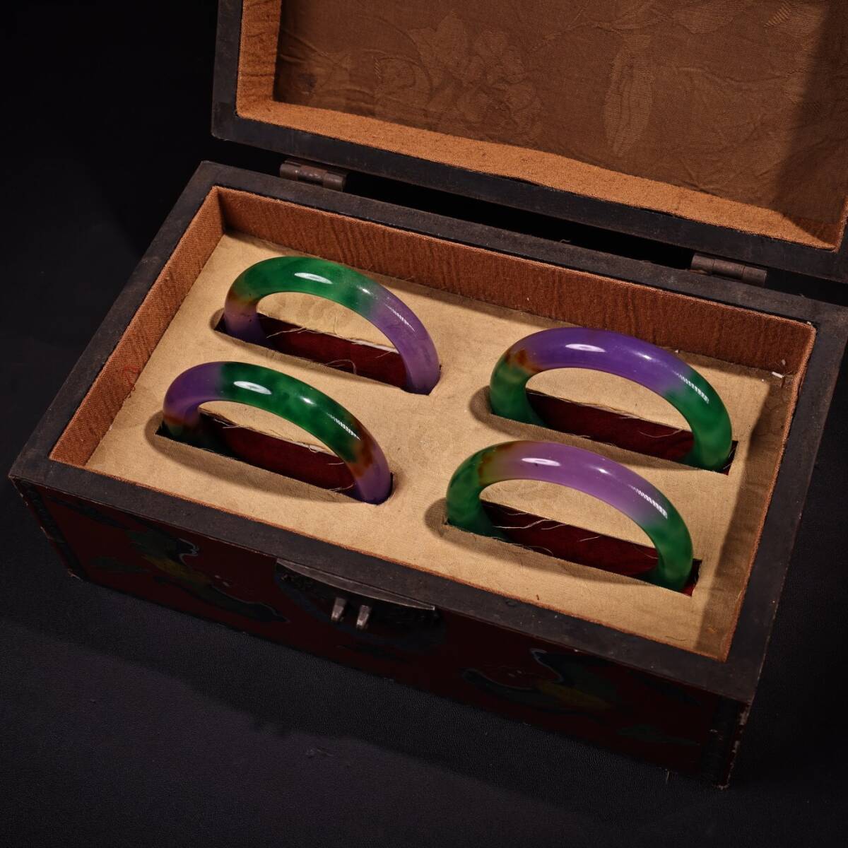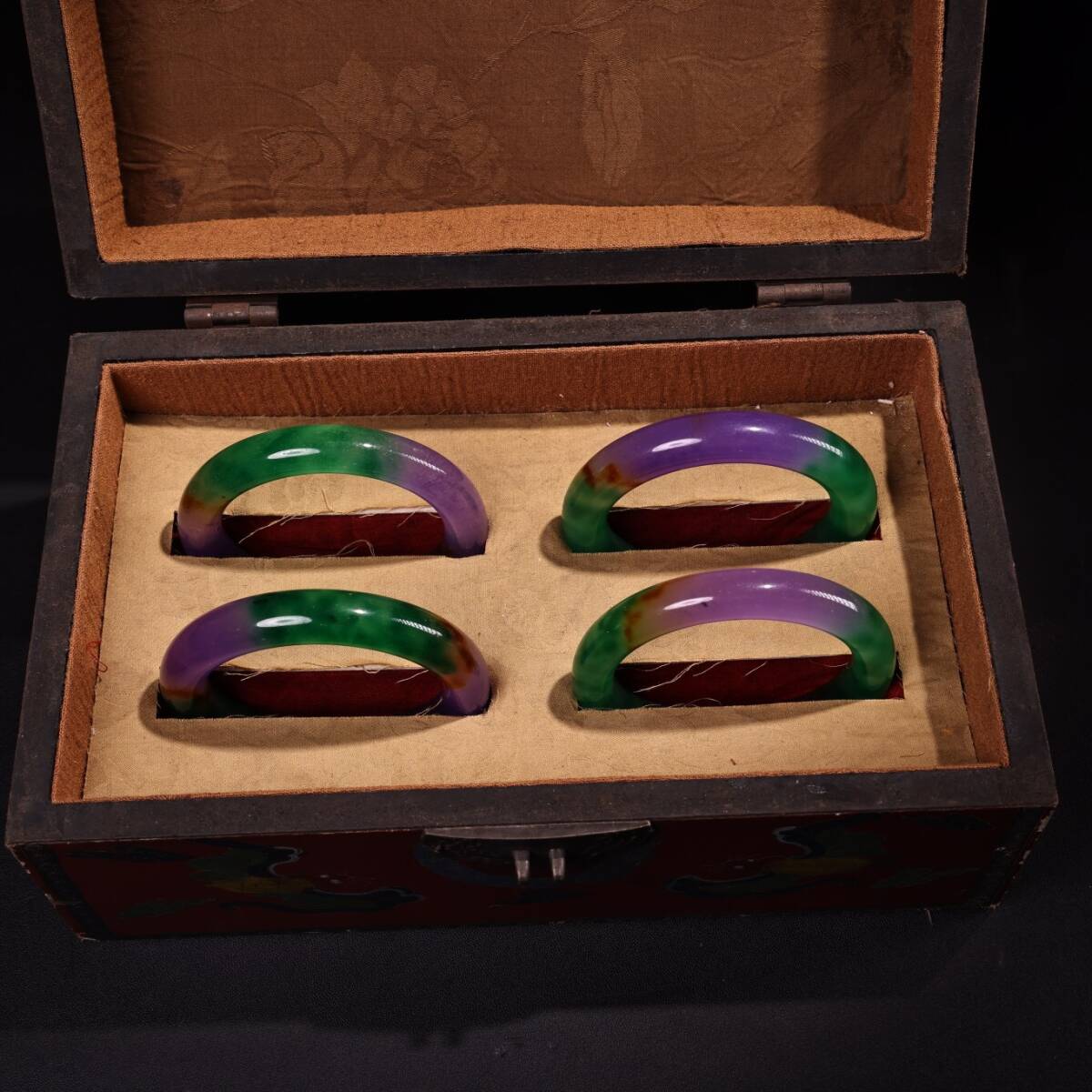▽鴻▽ 翡翠製 細密彫 紫羅蘭 腕輪 彩繪 箱付 根付 裝身具 古賞物 古董品 時代物 稀少珍品 中国古玩 中国古美術