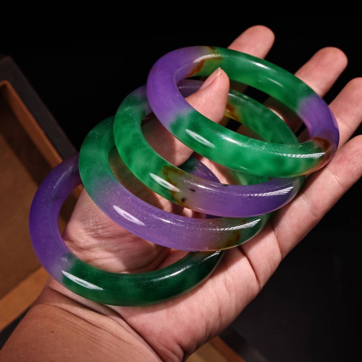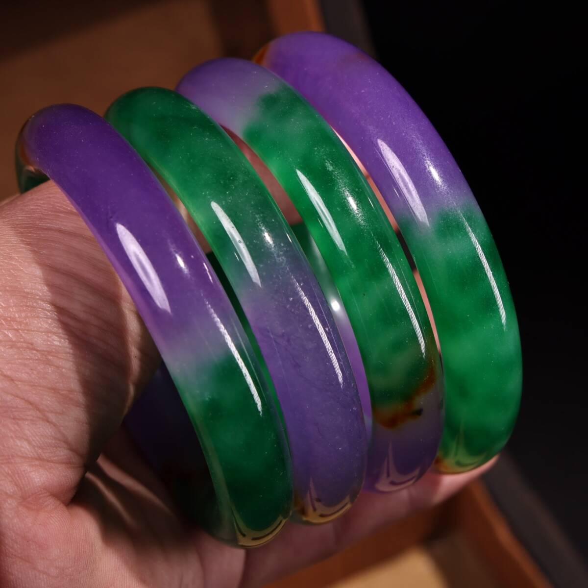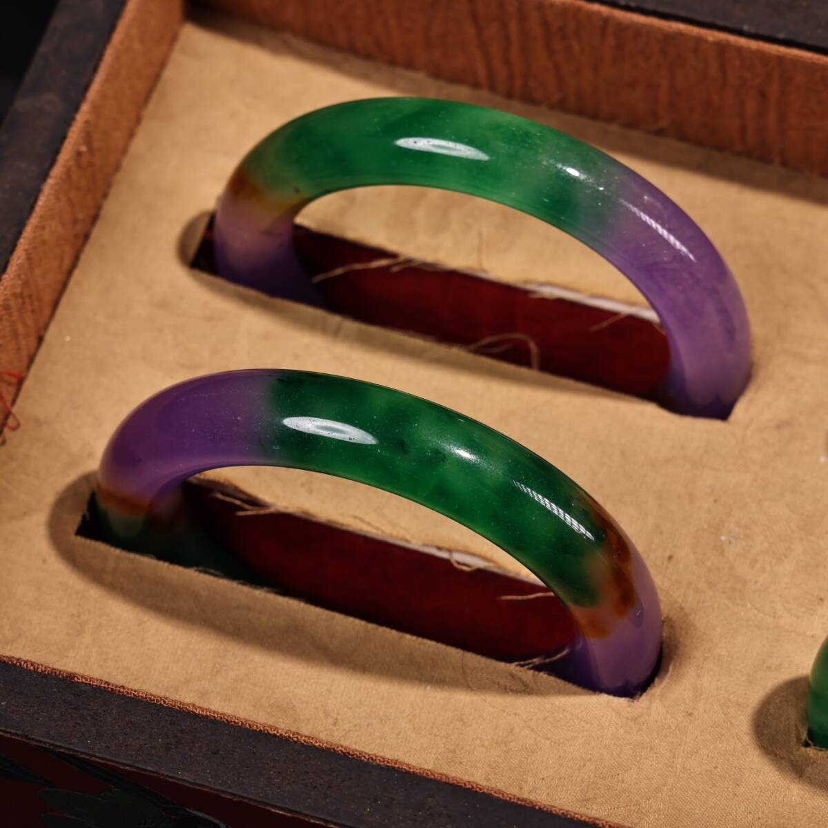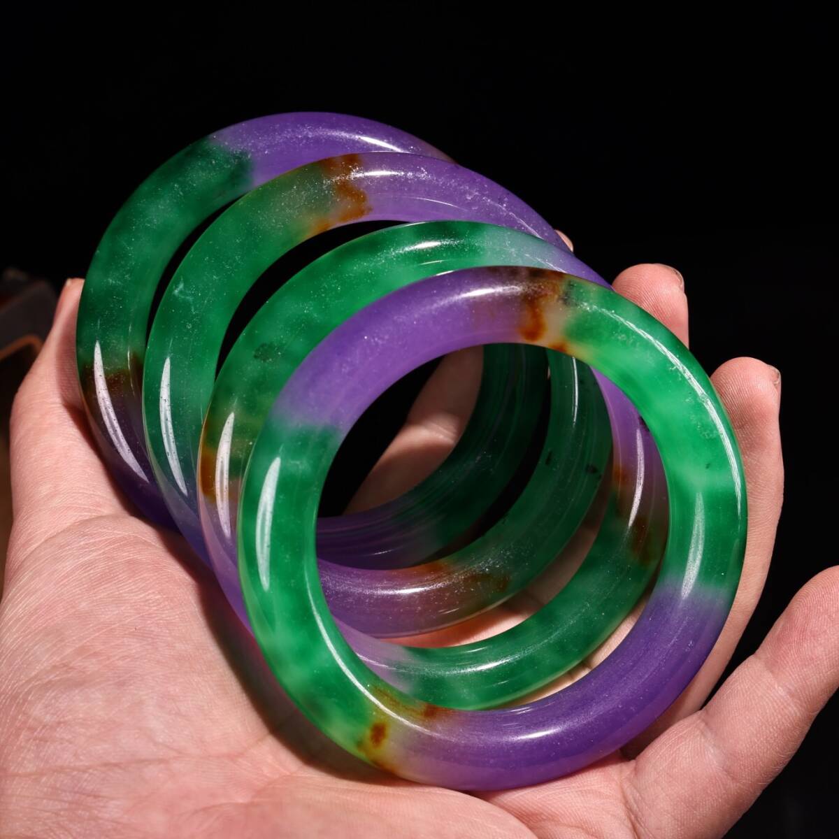 ▽鴻▽ 翡翠製 細密彫 紫羅蘭 腕輪 彩繪 箱付 根付 裝身具 古賞物 古董品 時代物 稀少珍品 中国古玩 中国古美術