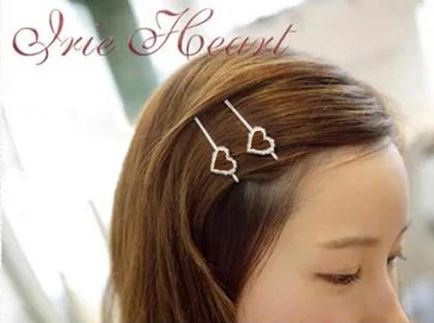 アイテム:シルバー ラインストーン ハート型 ヘアピン