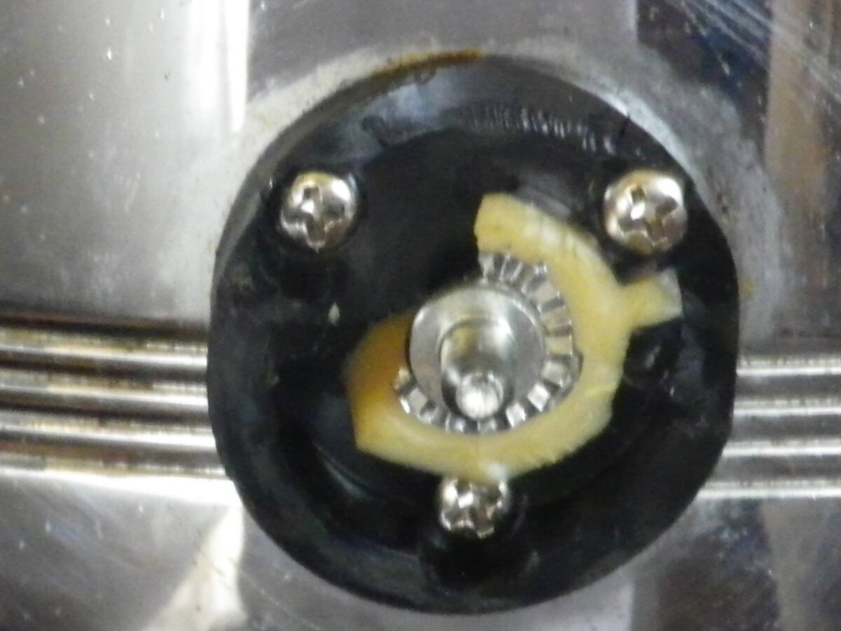 お写真でお分かりになる通りワンタッチコントロール(ミュートノブのツマミ)の内部プラ部品が経時劣化の為割れています。