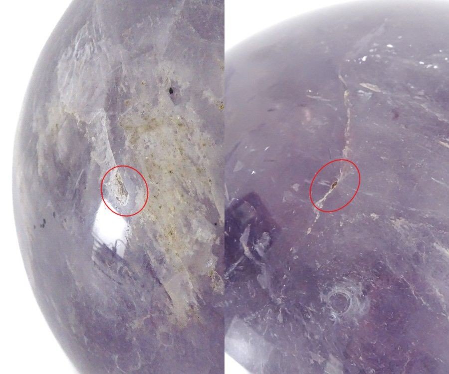 | 本体サイズ | ・アメジスト:φ 13㎝ ・本体重量:3.6kg ・台座:最大幅 7.8×高さ 6.8㎝ ※メジャー採寸の為、多少の誤差はご了承下さい。 |