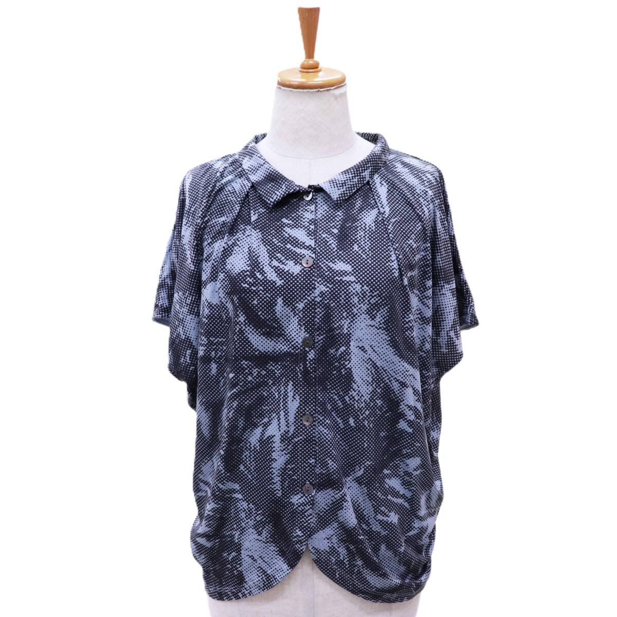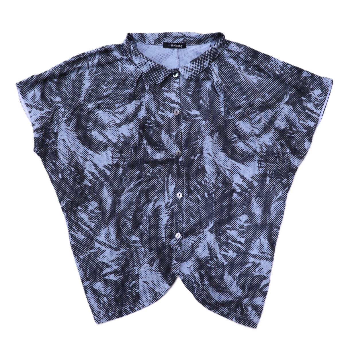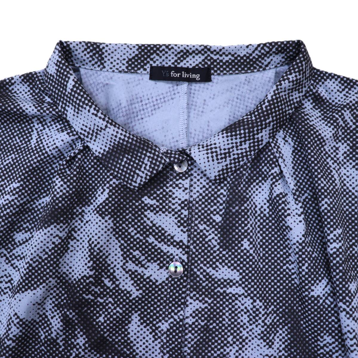 Y's for living_ワイズフォーリビング◆フレンチスリーブシャツブラウス/コットン/灰色系/総柄