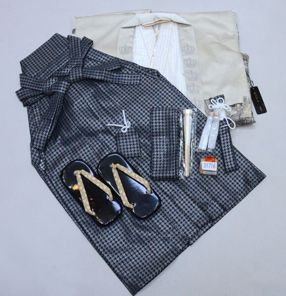 | 項目 | 五歳 羽織袴フルセット ・羽織 ・着物 ・長襦袢 ・袴 ・草履 ・角帯 ・扇子 ・短剣 ・羽織紐 ・お守り ・半衿(襦袢へ縫いつけられております) |