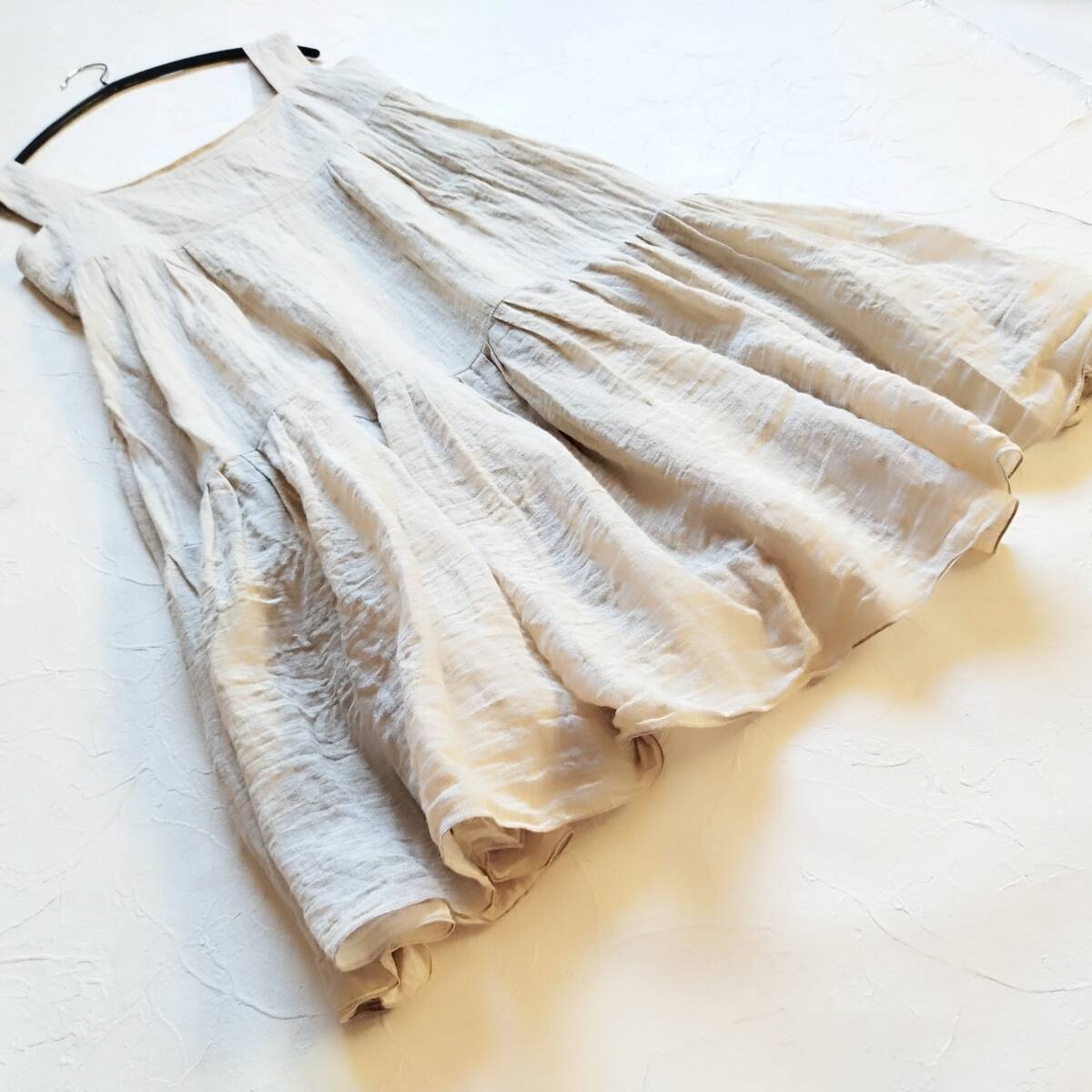 Natural by foxey ナチュラル バイ フォクシー 参考売価:12万ほど とても素敵なエンパイアラインのリネンワンピースです。(* ´ ∇ ` * ) 表地はリネン100%のお素材を贅沢に使用。さらっとしつつ程よい落ち感があり、 夏らしく涼し気な見た目で 高級感がございます。 高めの位置で切り替えた、ボリューム感のあるふわっとしたヘムラインが とてもエレガントな一着です♪ そのまま1枚でさらりと着こなせますし、カーディガンやジャケットを羽織ったり インナーを合わせても可愛いと思います。 ◇ コンディション 右サイドの裾に1カ所薄いシミがございます。(画像に掲載) また、ドライクリーニングのお品ですが、水洗いしておりますので 多少のシワが(特に裏地に)ございます。 上記以外、目立つ汚れやシミなどのダメージはありません♪ ※ リネン素材なので、風合いによるネップなど元々ございます。 ※ 個人保管品ですので、ご理解ある方のみお願い致します。 ◇ カラー ・・・ ベージュ系 ※変色のように見える箇所は光の加減です。 ◇ 素 材 ・・・ 画像の品質表示ラベルでご確認下さい。 ◇ 裏 地 ・・・ あり ◇ 仕 様 ・・・ 2ポケット付き バックファスナー付き。 ◇ 公式サイズ ・・・ 38 S相当 ◇ 平置き実寸はおよそ下記の通りです。(センチ単位) 身幅:42 ウエスト(胸の切替部分):40 総丈(肩上~裾までを計測):97 ☆ コーデに使用した他アイテム・アクセサリー類は付属しません…☆ *^^* ☆ 個人保管品ですので小さな見落としの際にはご容赦下さい。 「そんなの、全然いいさ♪」というおおらかな方のみ、ご入札をお願い致します…☆ ☆ お洋服の撮影につきましては床に直接置かずに壁紙や木板を敷いて撮影しております♪ 。。。。。。。。。。。。。。。。。。。。。。。。。。。。。。。。。。。。。。。。。。。。。。。。。。。。。。 ★ その他、洋服・クツ・雑貨 など よろず出品中。 ほとんどのお品は、同梱可能です♪ どうぞお越しくださいませ…☆