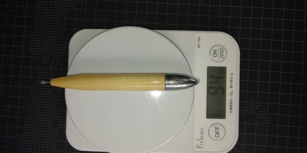 他のシンカーにないウッドで14㎜の細さです。