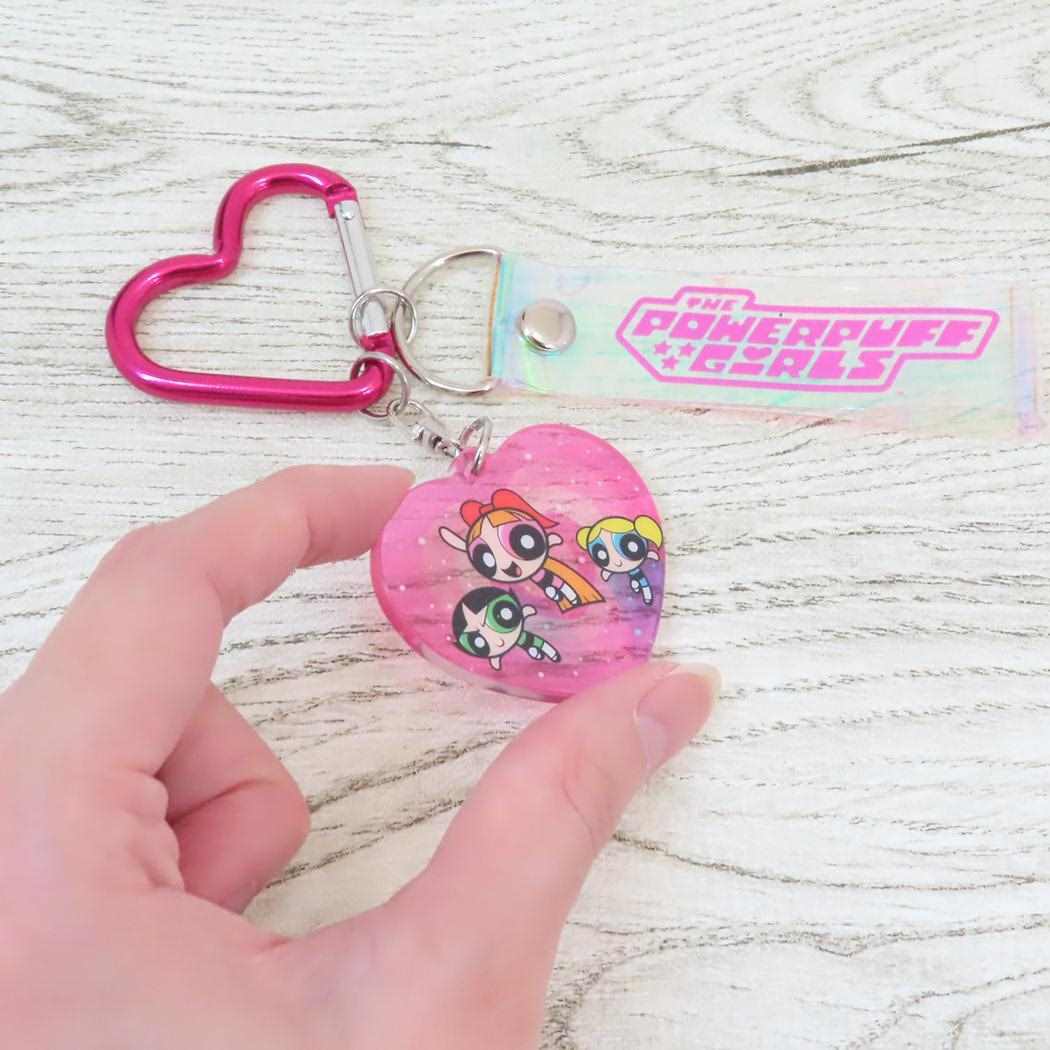 リュックやカバンにつけられるかわいいキーホルダー スーパーパワーを持ったブロッサム バブルス バターカップの3人娘が大活躍する[POWER PUFF GIRLS]グッズにまたまた可愛いnewアイテム登場こちらは光の当たり方によって色味が変わる、まるでオーロラのようにキラキラ輝く[オーロラテープキーホルダー]のアクリルチャーム付きモデルハート型のカラビナ付きでバッグやリュック、ペンケースに付けてトレンド感アップお気に入りのファッションのアクセントにGOODかわいいキーホルダーいろいろあるのでお気に入りを揃えてねサイズ:約43x135x4mm以内素材:アクリル、金属