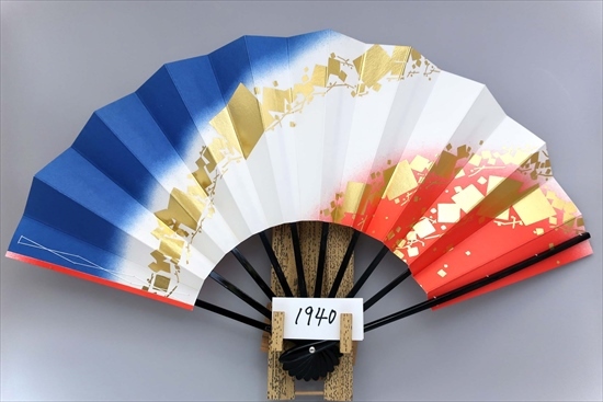 舞扇子 A1940 金小石ノギ並び 青・朱両妻ぼかし 【箱なし】