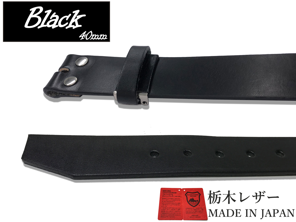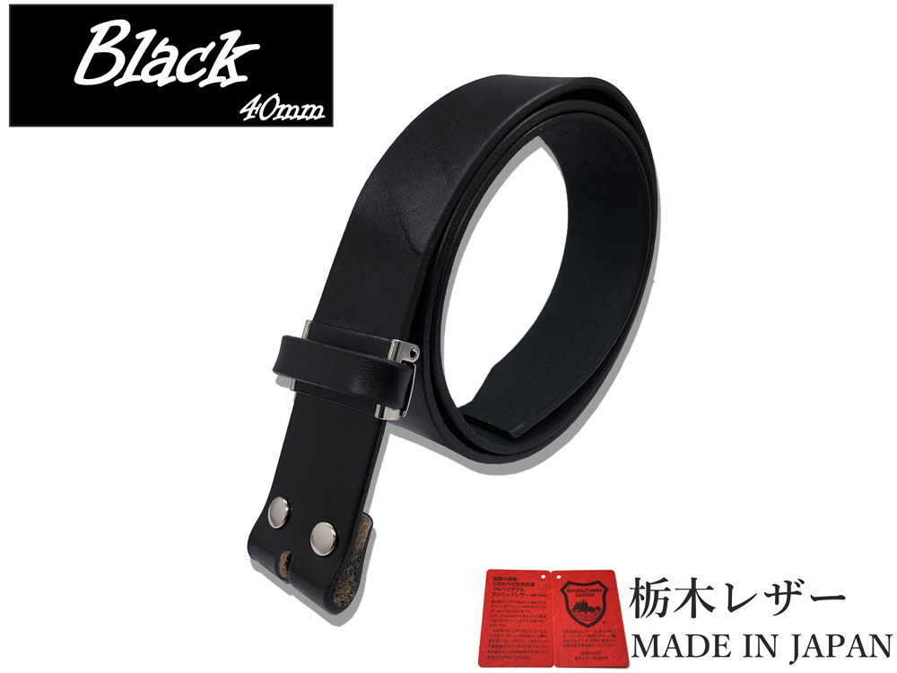 新品 栃木レザー カジュアルベルト Mサイズ メンズ 無地 帯のみ 本革 交換用 取り換え 牛革 40mm 黒色 ブラック 銀ホック W041BKS