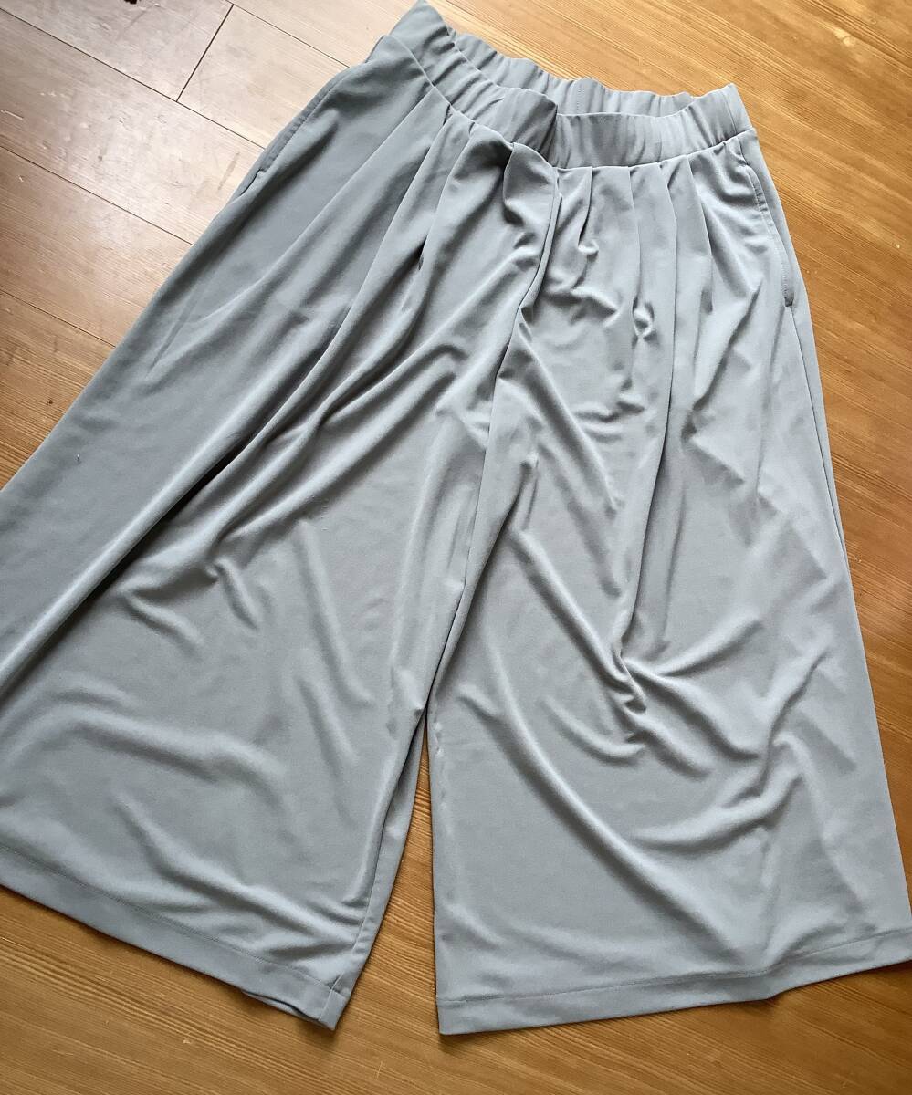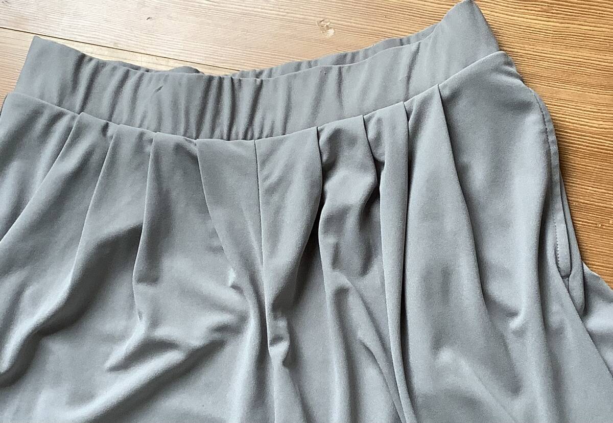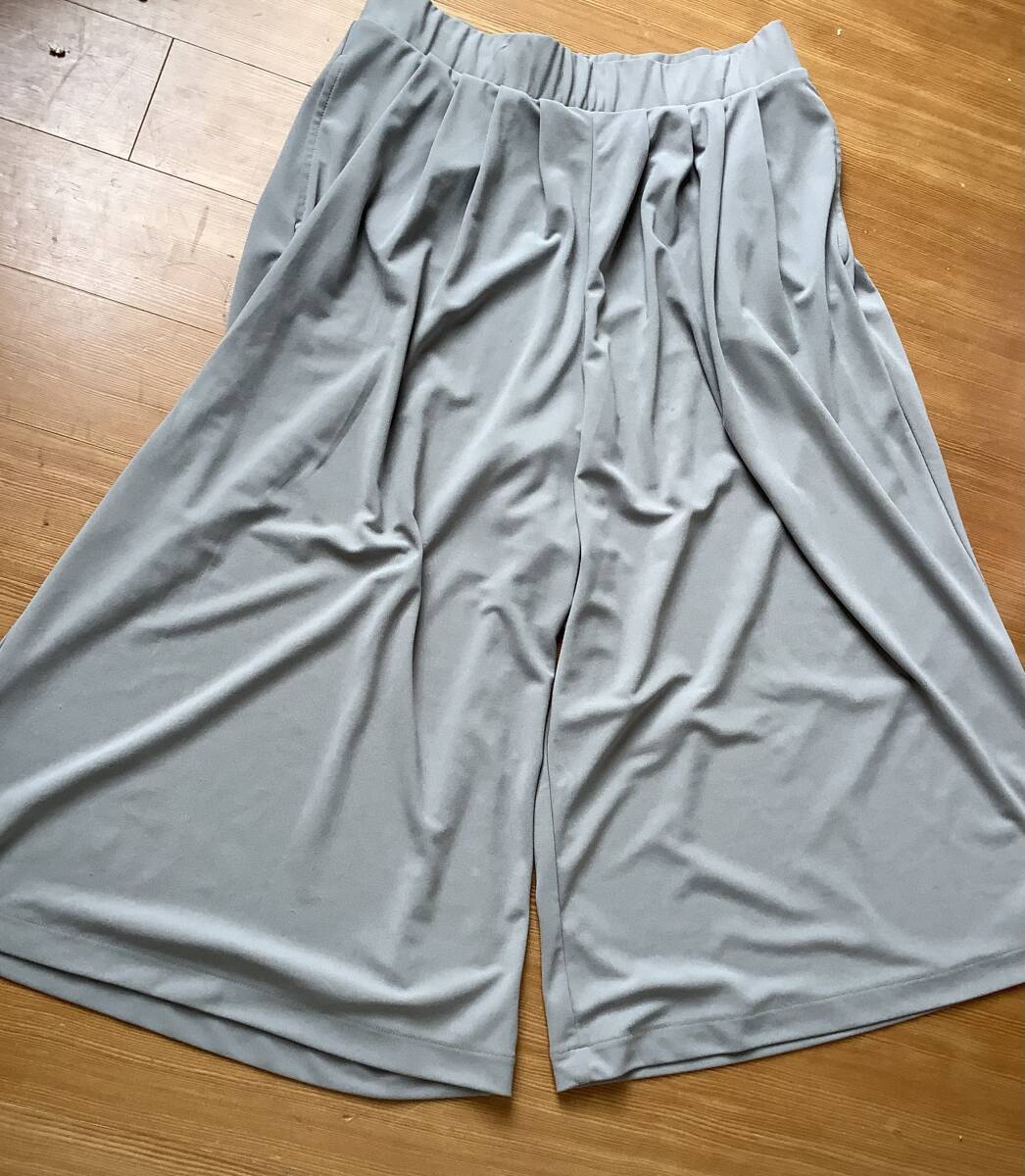 送料無料!美品 ユニクロLサイズタックフレア〜膝下丈キュロットグレー