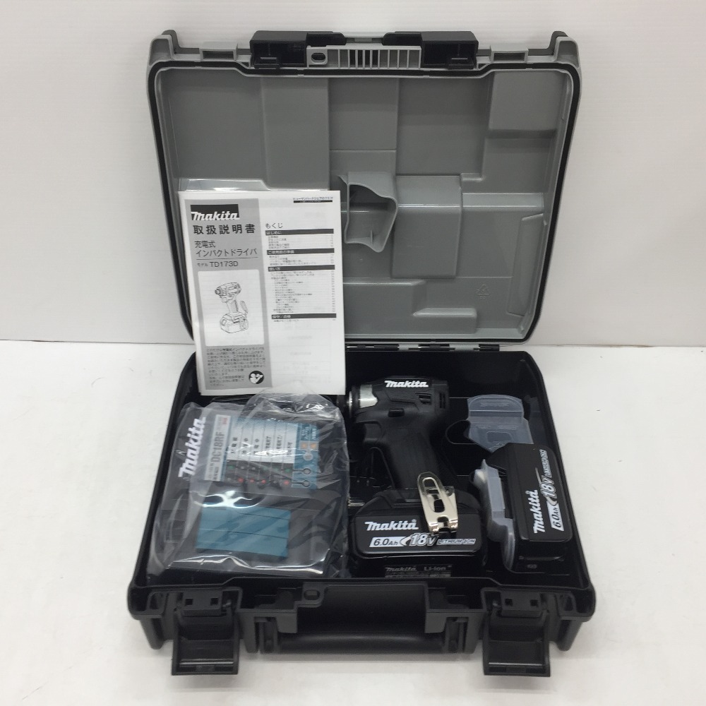 | makita マキタ 18V 6.0Ah 充電式インパクトドライバ 黒 ケース・充電器・バッテリ2個セット TD173DRGXB 未使用品 |