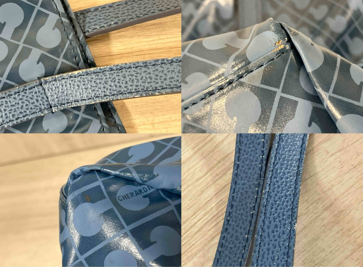 | 全体的に小傷、細かな汚れあり、底面に角擦れあり、ストラップに角擦れあり、全体的に使用感あり |