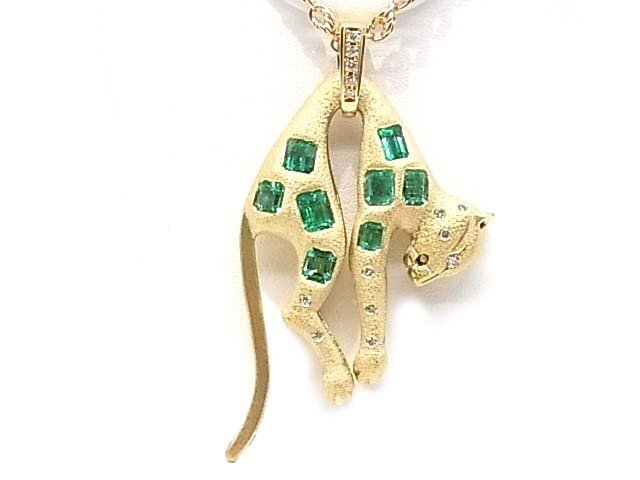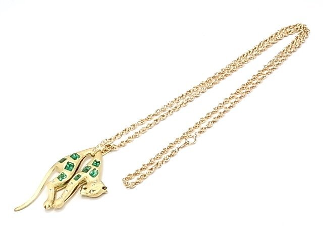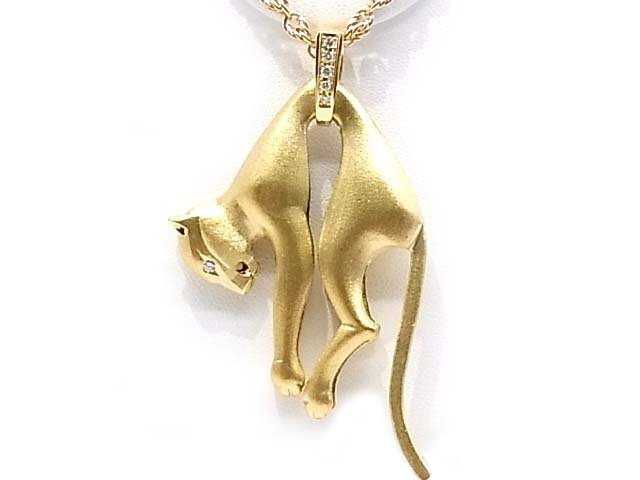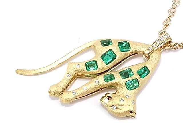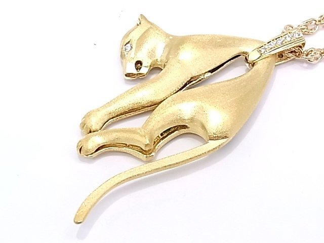 g19434 K18YG E2.45ct D0.25ct パンサーネックレス USED 美品 38.2g 60cm ソーティング付