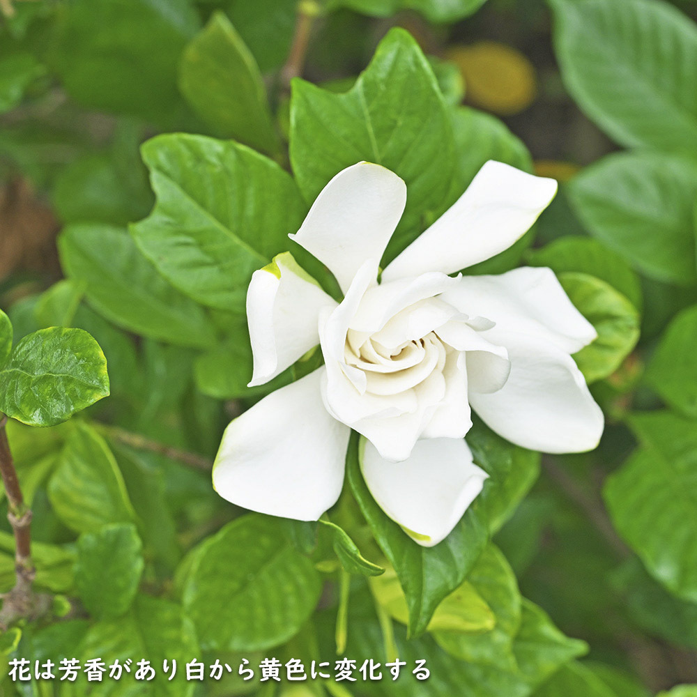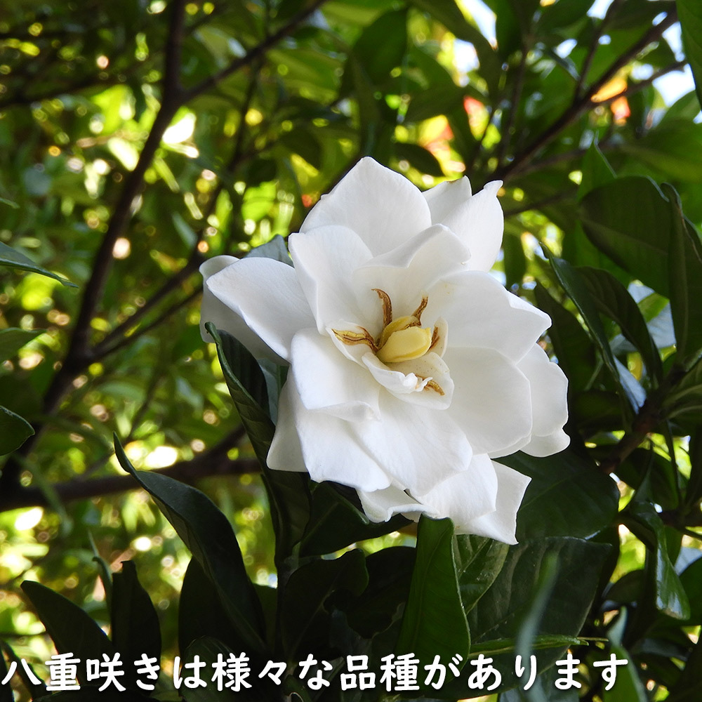 クチナシ八重は八重咲き品種になります。濃厚な香りが特徴です。丈夫な植物で洋風、和風どちらの庭木でもよくあいます。