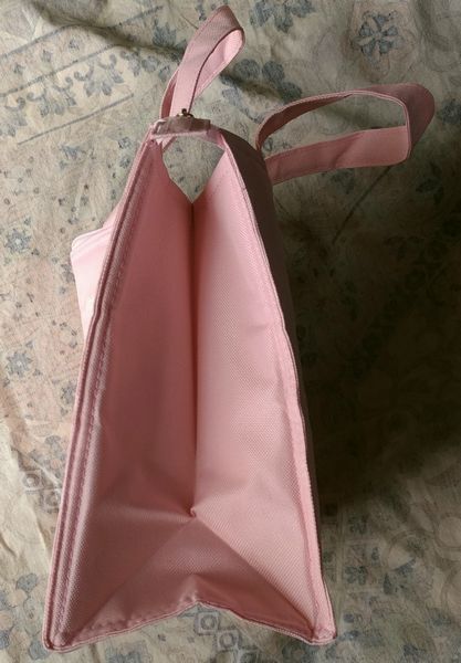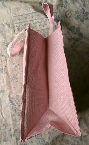 ざっくりと持ち手除く本体部の縦約25cm、横約24.5cm、マチ約14cmです。