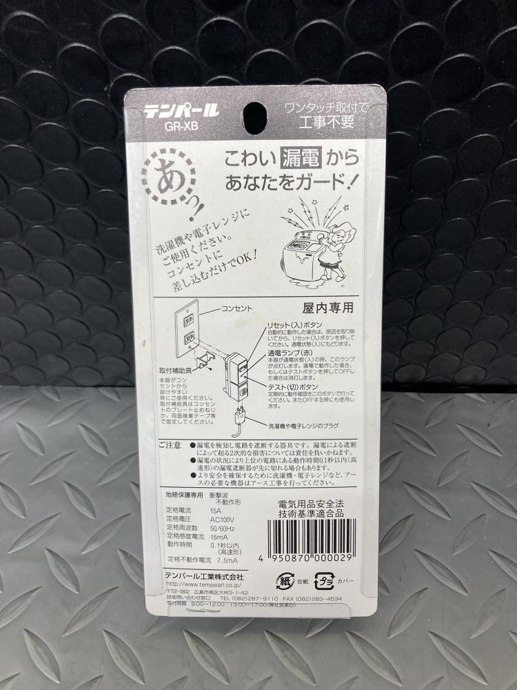 テンパール ■商品名 ビリビリガード(プラグ形漏電遮断器) ■型番 GR-XB |