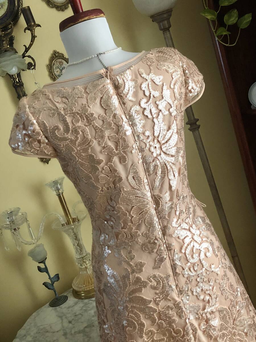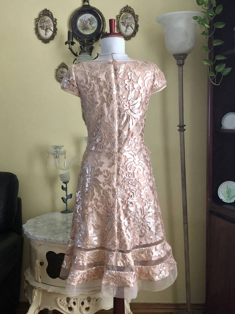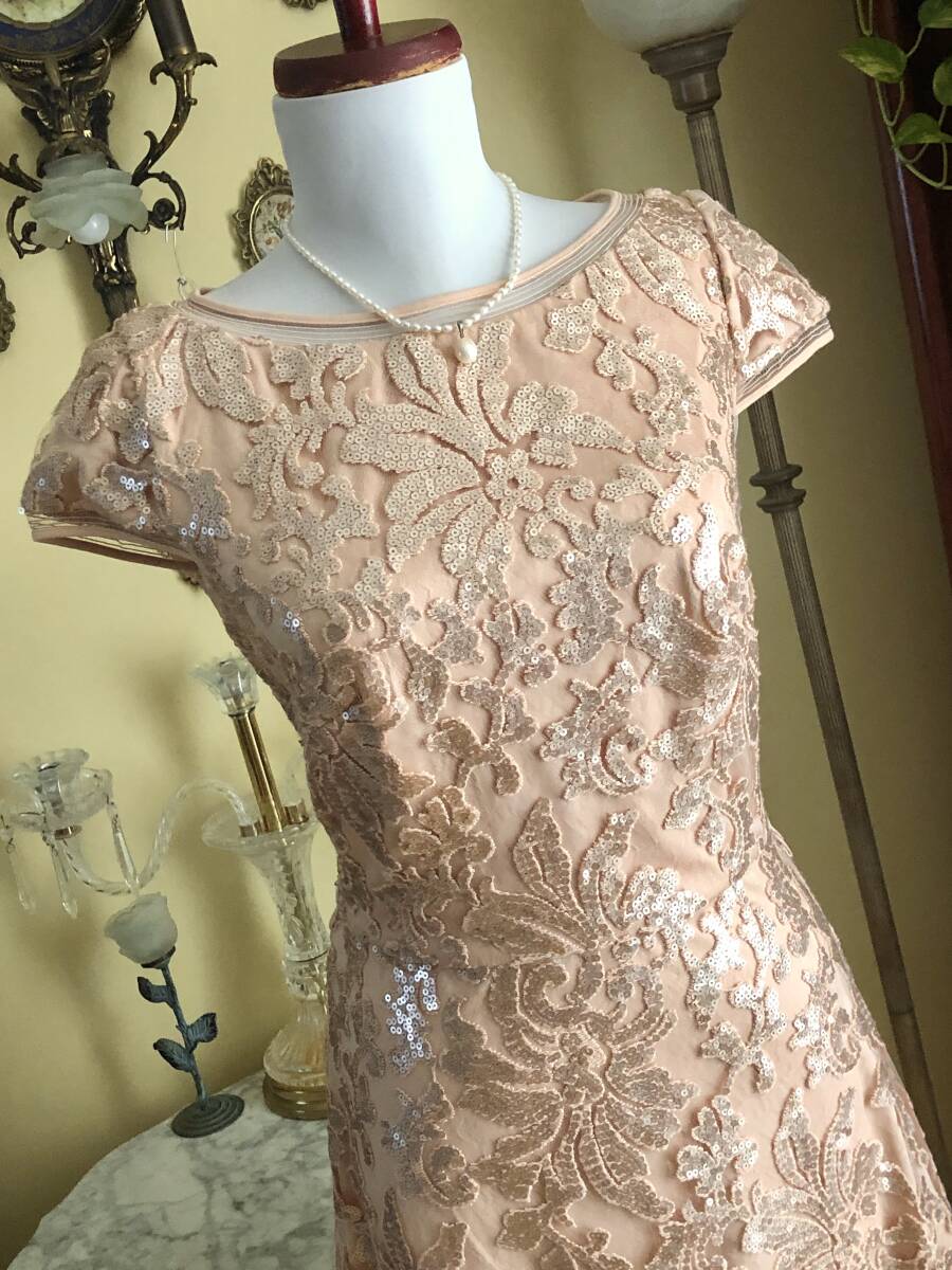| 【状態】中古 綺麗なお品です。 【ブランド】TADASHI SHOJI 【サイズ】表示サイズ/us(アメリカ)4 日本対応サイズ目安/ 9号Mサイズぐらい *個人差がございます。必ず採寸をご参照ください。 【採寸】平置き採寸です。 肩幅36㎝、身幅44㎝、ウエスト37cm、着丈100㎝(上身丈40㎝+スカート丈60㎝) 【カラー】ピンクベージュ 【素材】ナイロン40%、コットン30%、ポリエステル30% 【裏地の素材】ポリエステル100% 【着脱】後ファスナー