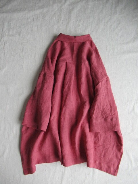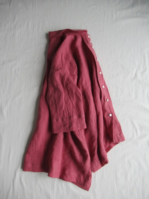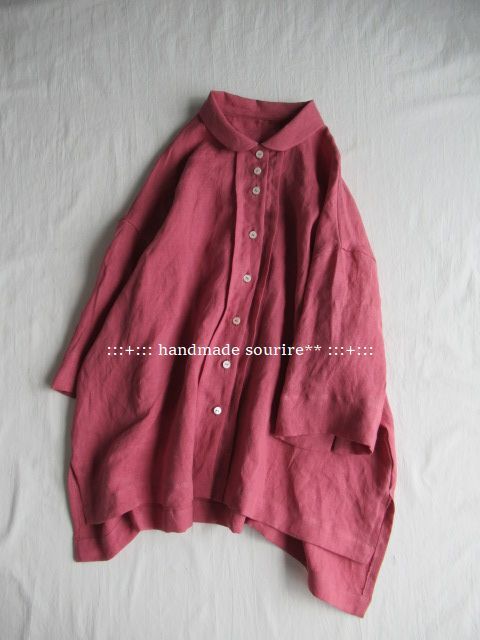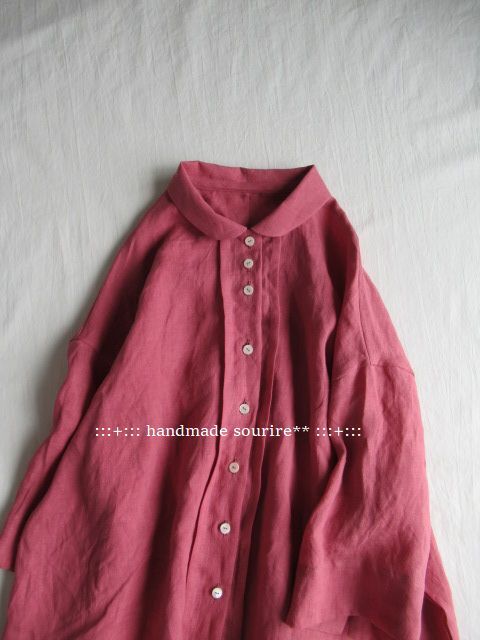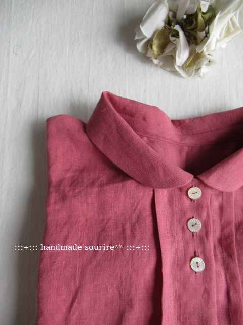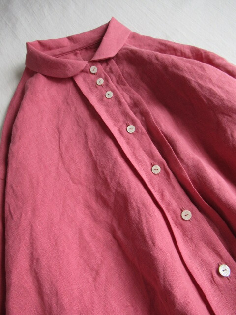 :::ハンドメイド フレンチリネン スモーキーピンク チビエリ シャツ:::