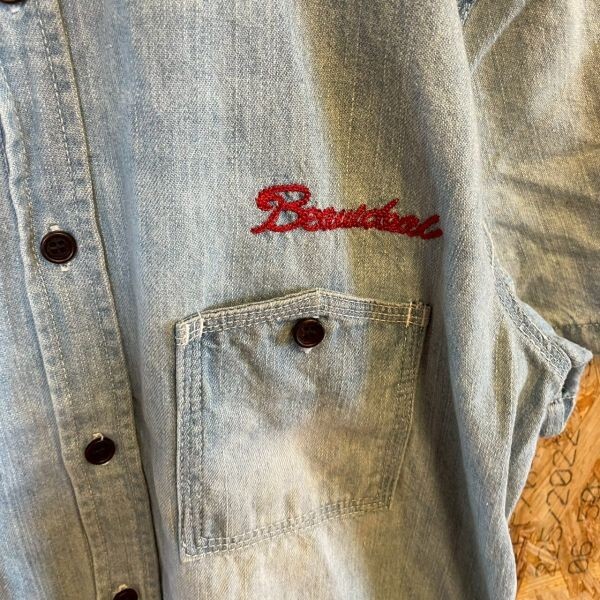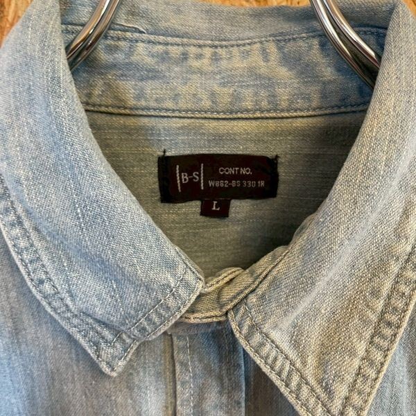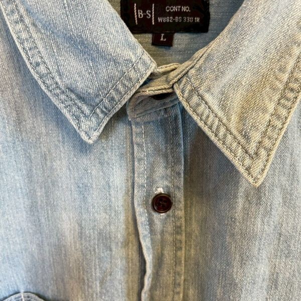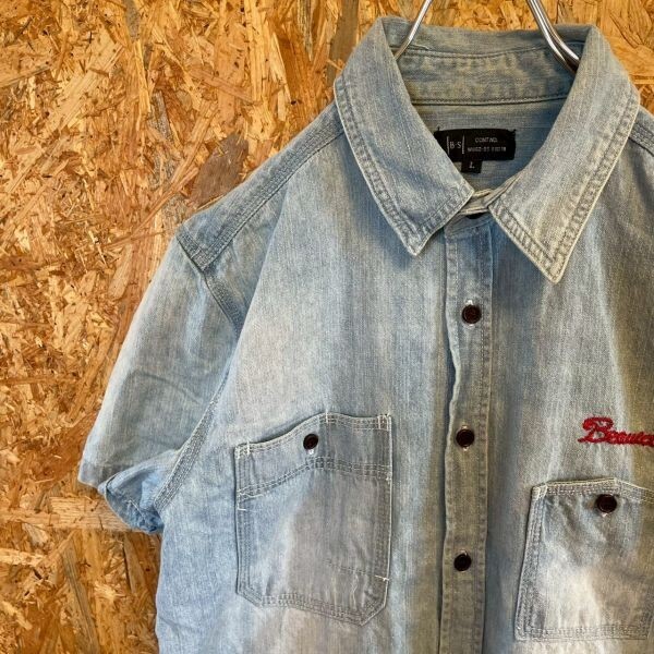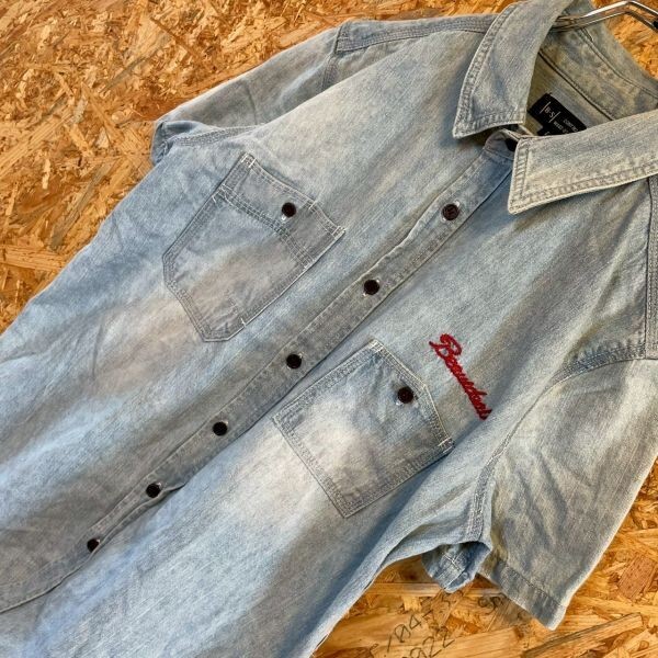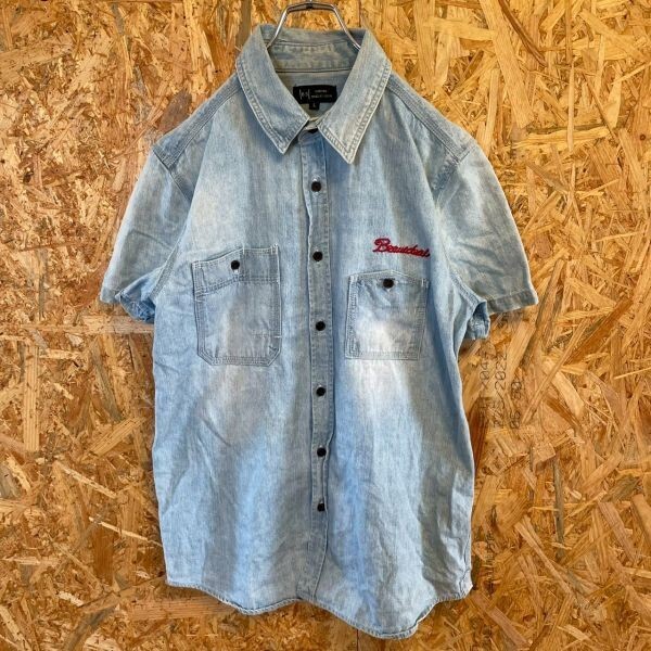 [KWT6174] B-S 半袖デニムシャツ メンズ ライトブルー L ポス
