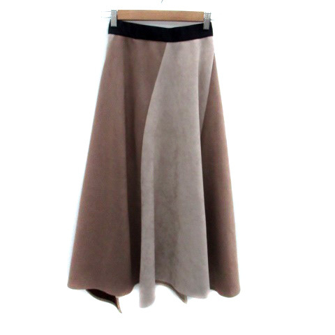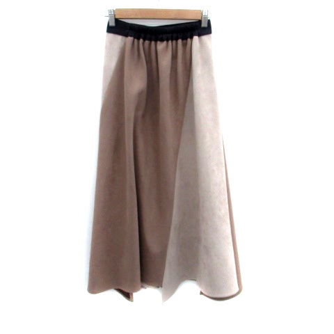 ドゥドゥ DOUDOU フレアスカート ロング丈 マキシ丈 スエード調 マルチカラー ベージュ /HO16 レディース
