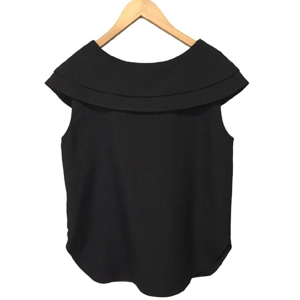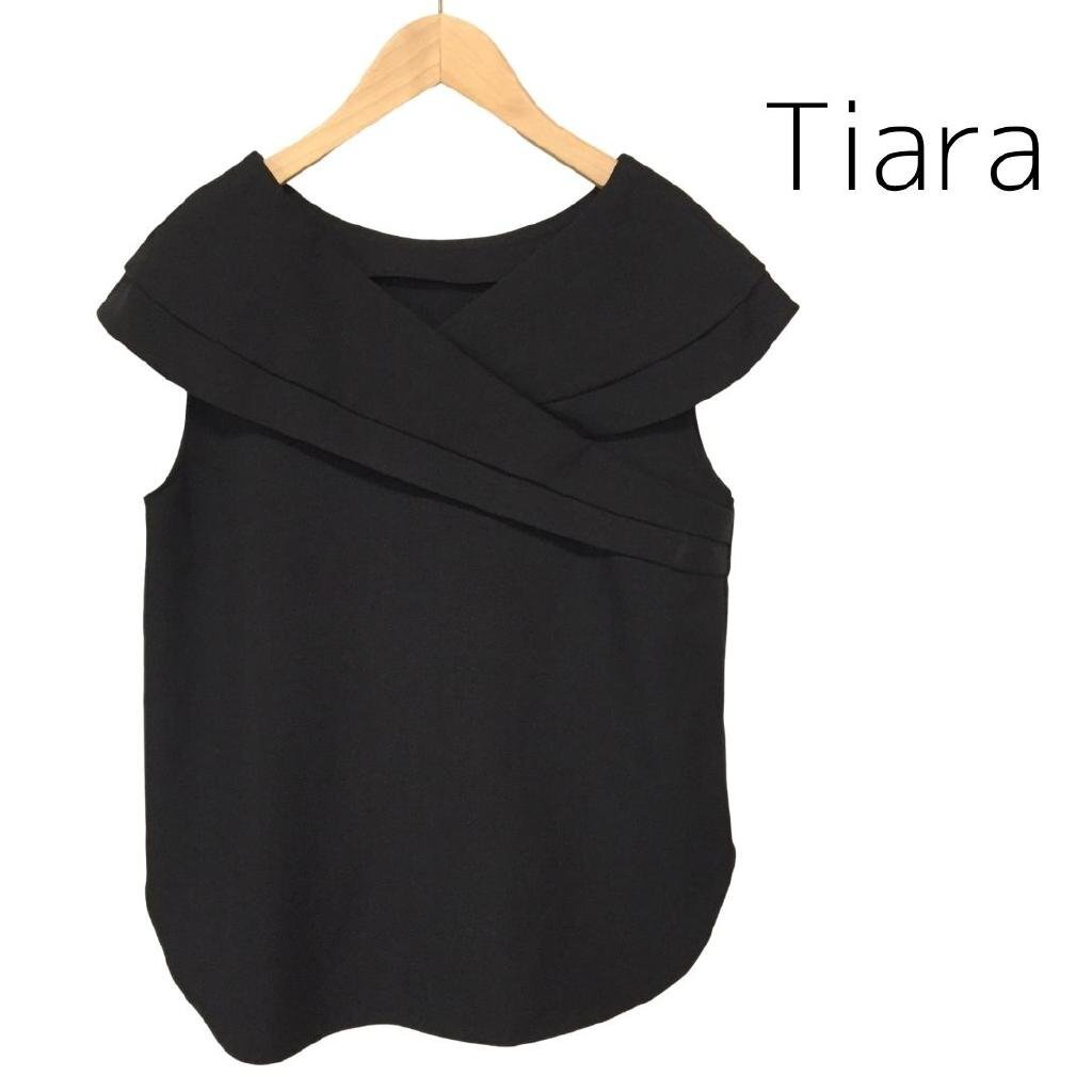 【送料込】 Tiaraティアラ シャツ・ブラウス ブラック 黒 無地 ノースリーブ 重ねVネック size表記なし F(フリー) 大人フェミニン/971341