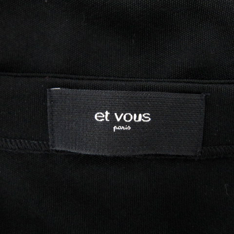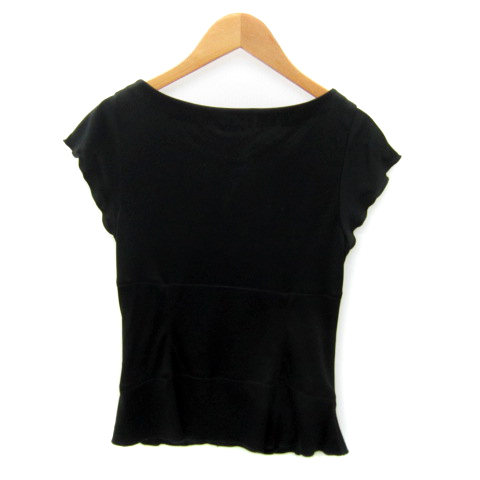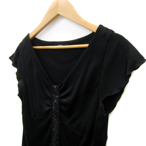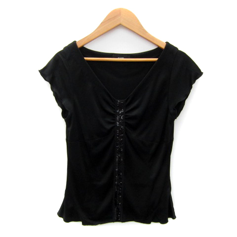 エヴー ET VOUS カットソー フレンチスリーブ Vネック 無地 スパンコール装飾 黒 ブラック /SY30 レディース