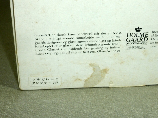 | 商品説明 | ホルムガード/デンマーク マルガレーテ タンブラーグラス2客 中古美品 使用感無くキレイな状態です 箱の蓋はありません 口径:5,5cm 高さ:14cm |