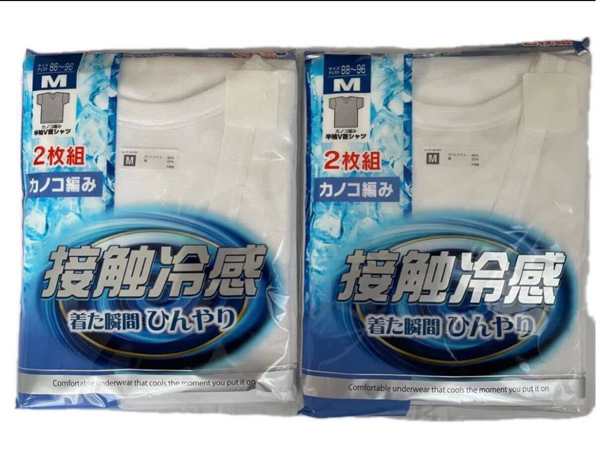【商品説明】メンズ(男性用下着)・インナーシャツ・半袖シャツ・下着(肌着)・Mサイズ・チェスト(88㎝-96㎝)・カラー(白色・ホワイト)・ポリエステル80%・綿20%・2枚組(2組セット)・なんと!合計4枚セット・カノコ編み・接触冷感・着た瞬間ひんやり・爽やかで快適・暑さ対策・早い者勝ち・ペット歴なし・喫煙者なし(禁煙者)