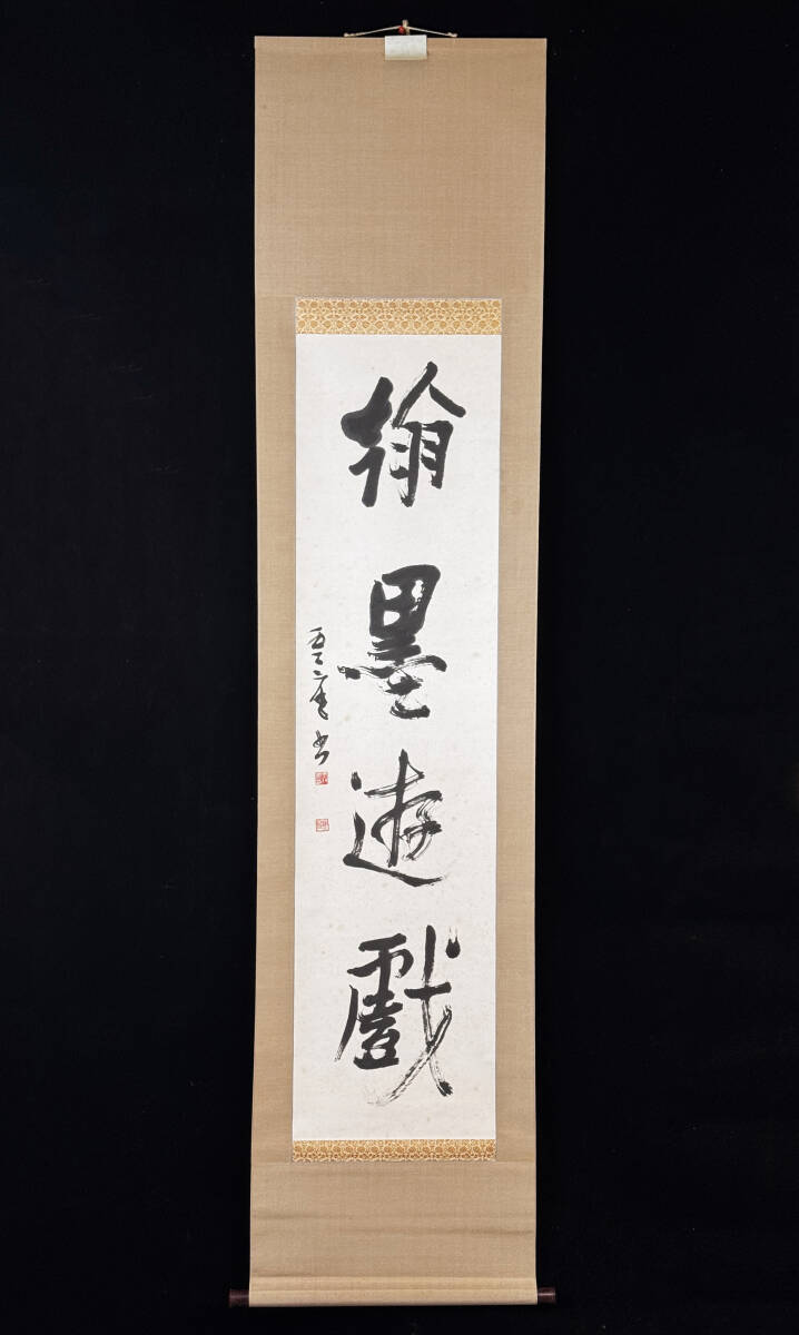 真作◆赤羽雲庭◆関東書道家蔵出 「翰墨遊戯」 肉筆紙本 掛軸 箱付 258-37検:青山杉雨 桑原翠邦 比田井天来 上田桑鳩 額装