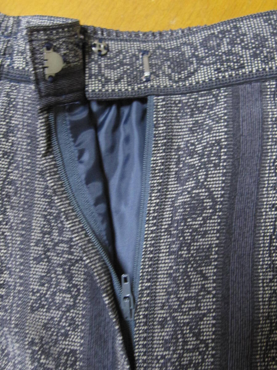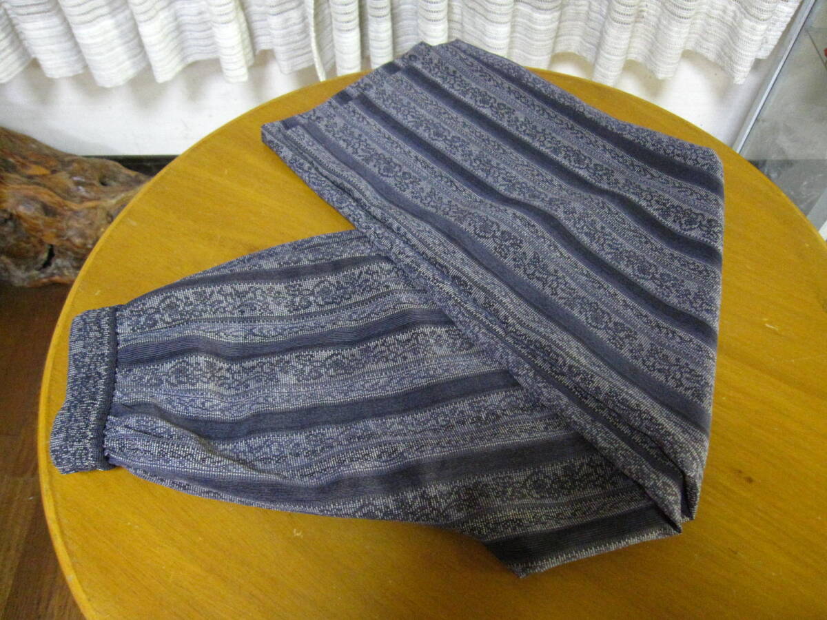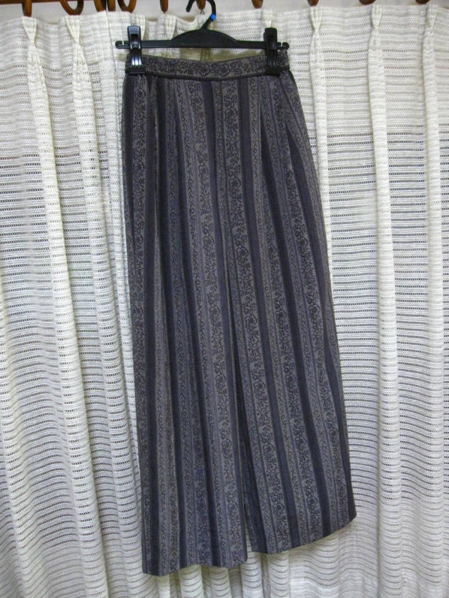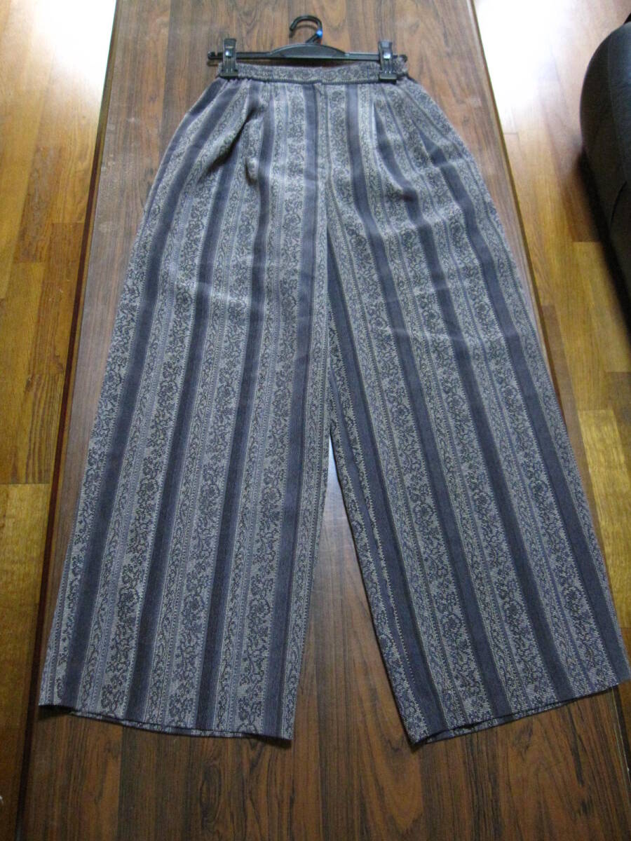 ジッパー付きパンツ ズボン M レディース 女性 婦人 花 模様 ライン グレー 丈100 ポリ 格安 兼用 可愛 お洒落 ウエストゴム ホック 当時物