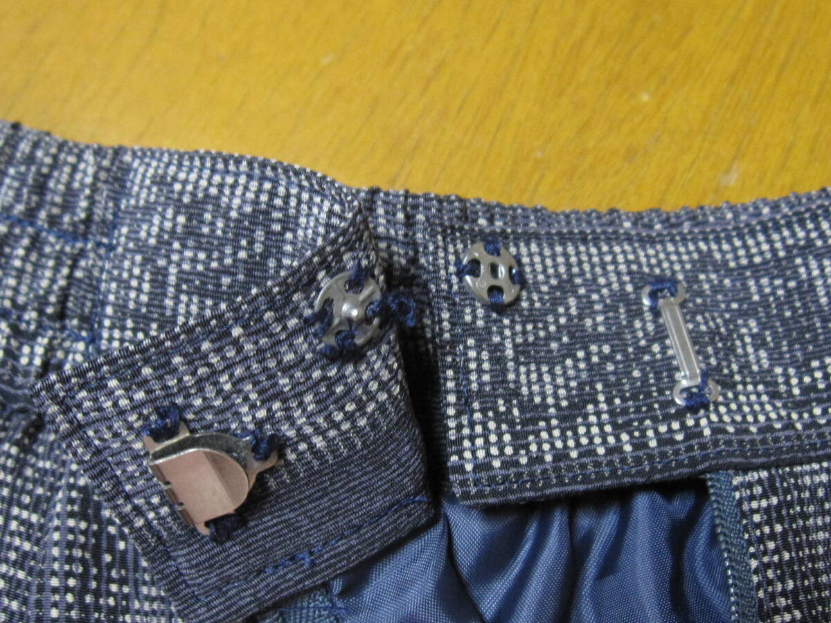 ホック付き前開きファスナータイプでウエストゴム入りのデザインに。