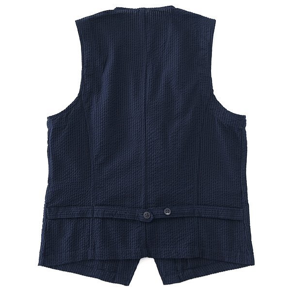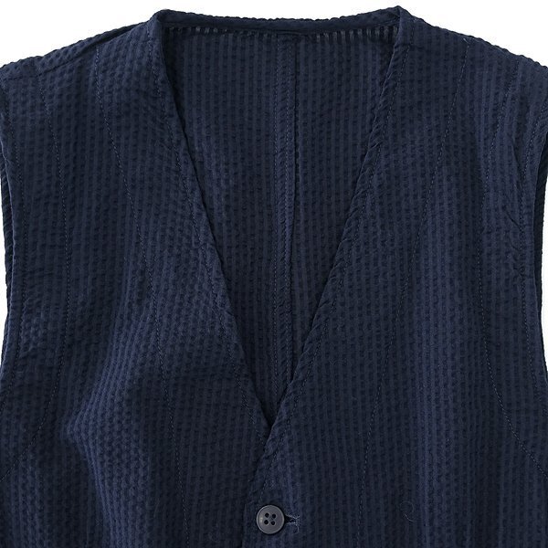 サラッとしたドライな肌触りで、通気性、吸水速乾性に優れたシアサッカーベストです。 シアサッカー独特の凹凸感により肌離れが良く、春夏シーズンにピッタリの清涼感にあふれています。 様々なコーディネートに取り入れやすいデザインで、オンオフ兼用でお使い頂けます。 |