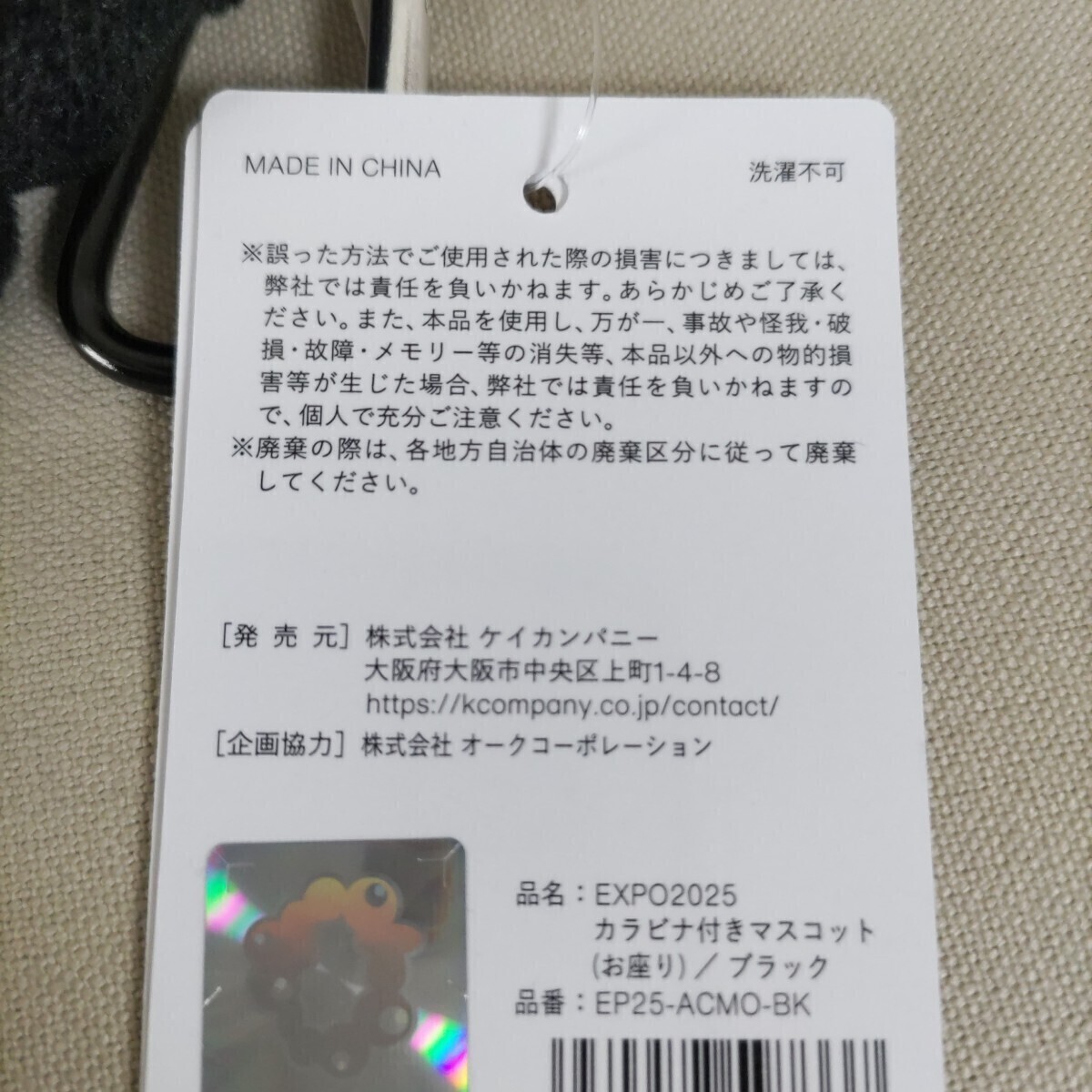 【未使用タグ付】関西万博大阪万博★ミャクミャク★《お座り》カラビナ付マスコット ブラック ぬいぐるみ expo2025
