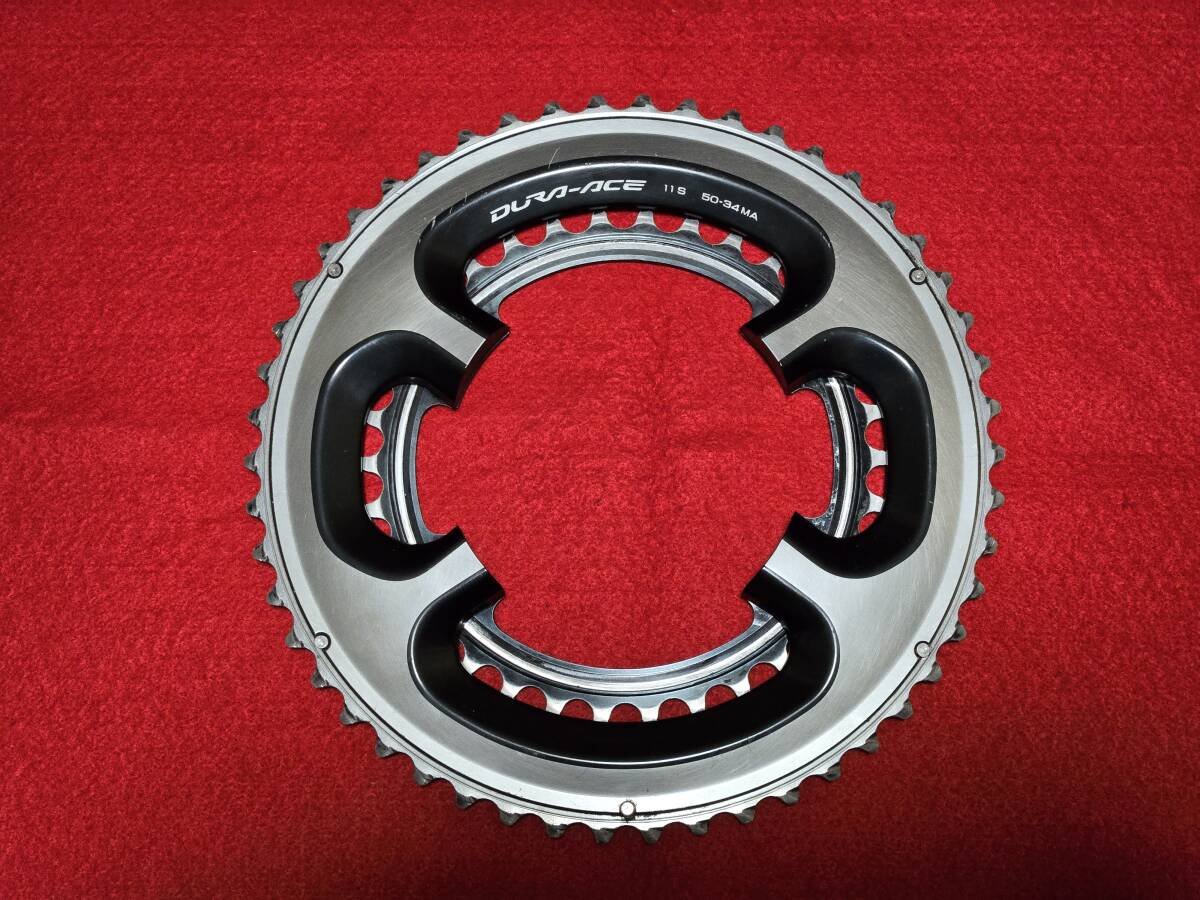 H 美品 DURA-ACE デュラエース FC-9000 チェーンリングセット 50-34t チェーンリングボルト付き 11s 銀デュラ アウター BCD110 4アーム