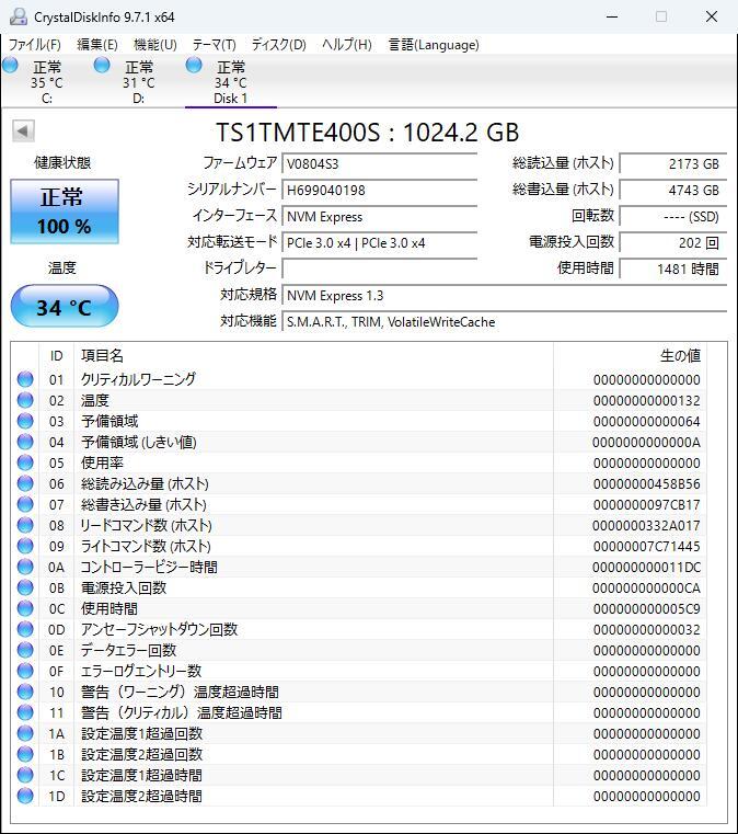 TS1TMTE400S [PCIe SSD 400S M.2 Type2242 NVMe 1TB]