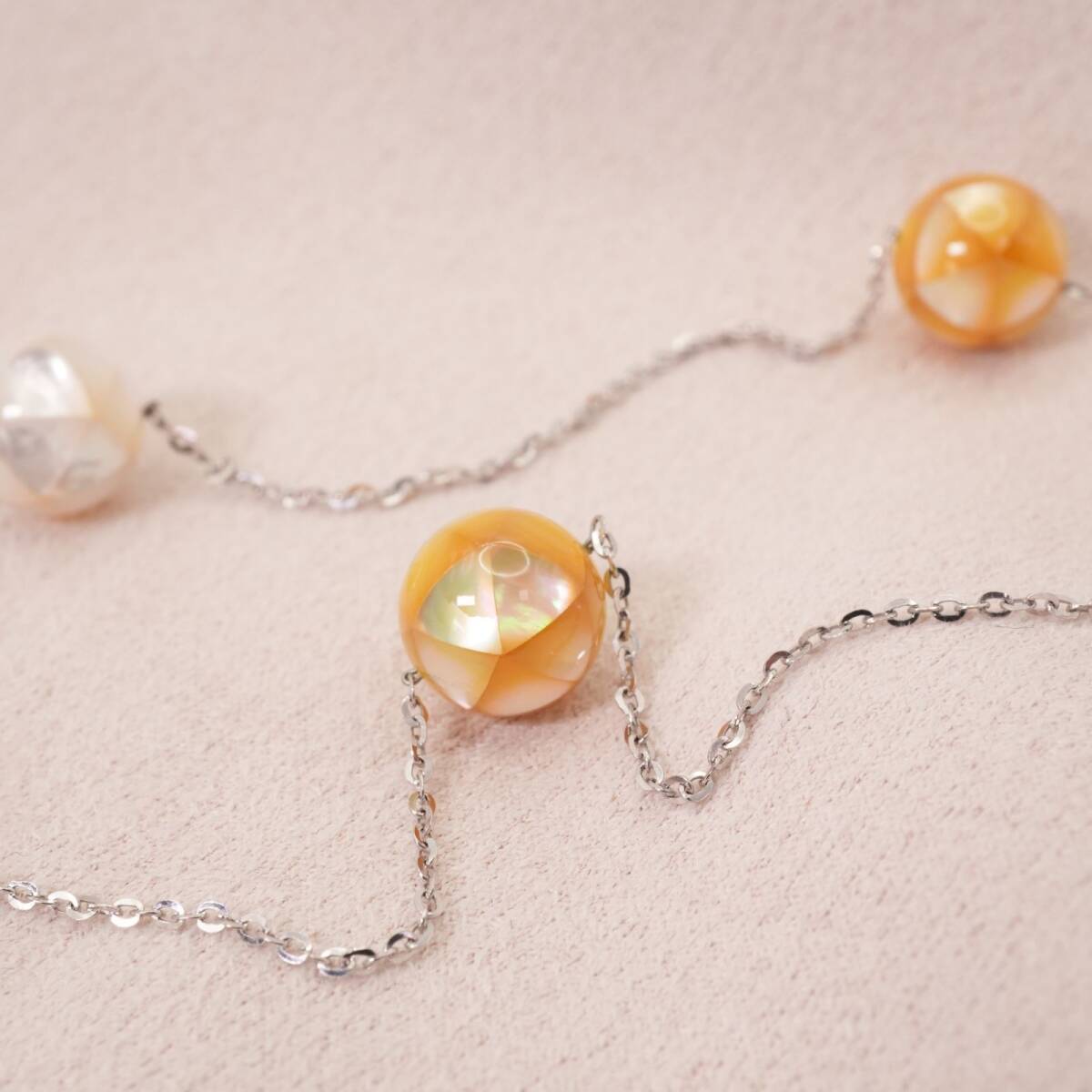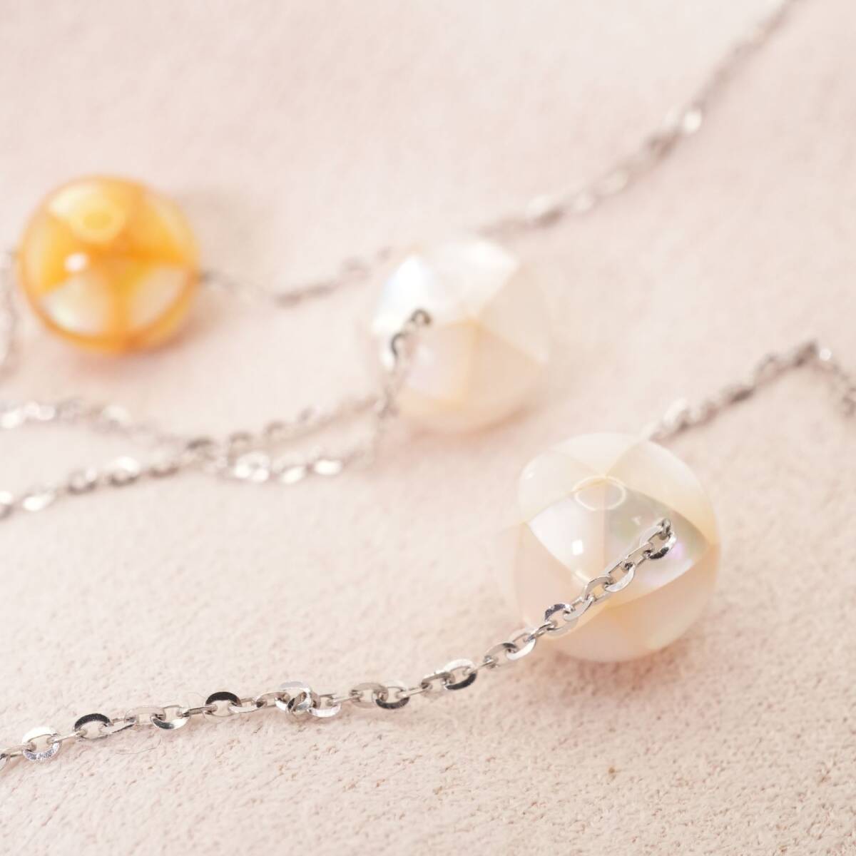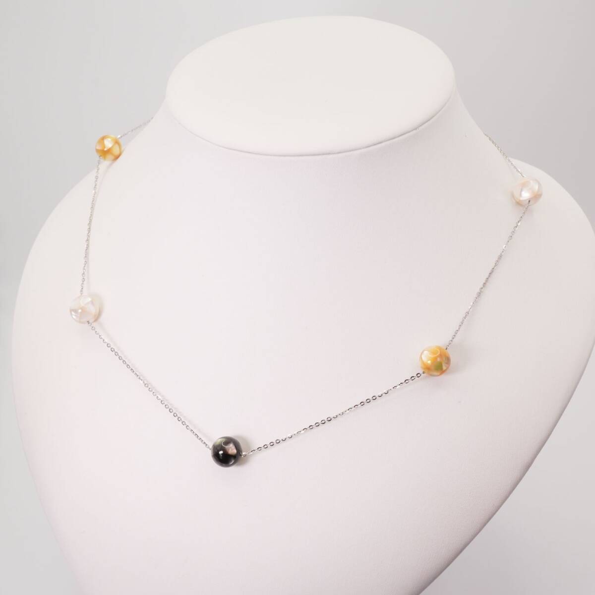 美品 K18WG シェル ボール ネックレス マルチカラー/24-4921S