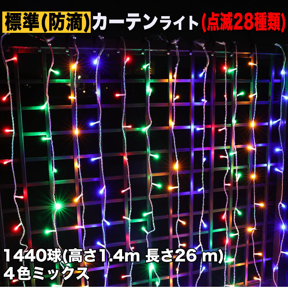 | 長さ 26m 1440球 4色ミックス Bコントローラー 付 ![]() 最近は、LEDイルミネーションも各社が販売しており、 会社はもちろん、自宅等にもイルミネーションを飾り付けするケースも増えてきました。 イルミネーションで、木、庭、クリスマスツリー 等をライトアップでき、 明るく印象を変える事ができます。 最近は、価格安いイルミネーションも増えていますが、 品質面に不安を感じた事はありませんか? 「防水性能がしっかりしておらず壊れた…」 「LEDの明るさが暗い…」 「コントローラーの作りが簡素で不安」 等々で、失敗されたお客様、 品質にこだわったイルミネーションを使ってみませんか? 当社のイルミネーションは、購入してから 安心してお使い頂く為に、 とにかく品質面にこだわった商品です。 こだわりのポイントをご紹介いたします。 ![]() ![]() ![]() ![]() ![]() ![]()
