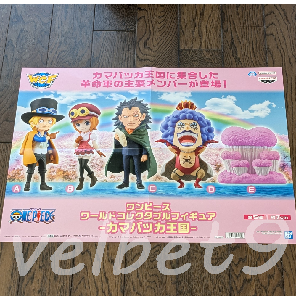 | 商品説明 | バンプレストより発売のプライズ景品(クレーンゲーム景品) 『ワンピース ワールドコレクタブルフィギュア-カマバッカ王国-』から 1.)サボ(1個) 2.)コアラ(1個) 3.)モンキー・D・ドラゴン(1個) 4.)エンポリオ・イワンコフ(1個) 5.)カマバッカ王国(1個) の全5種を各1個ずつご提供します。もちろん国内正規品です。 商品サイズは約7cmになります。 オマケとして販促用非売品のA2ポスター1枚をお付けします。 ポスターも未使用品ですが、最初からシワや折り目があります。 | |
