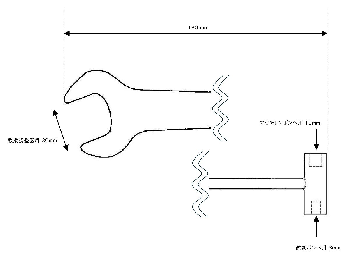 商品説明 | ・酸素調整器のボンベ取付けスパナ ・酸素ボンベの開閉用ハンドル ・アセチレンボンベの開閉用ハンドル 上記3用途が1本で可能な工具です。 |