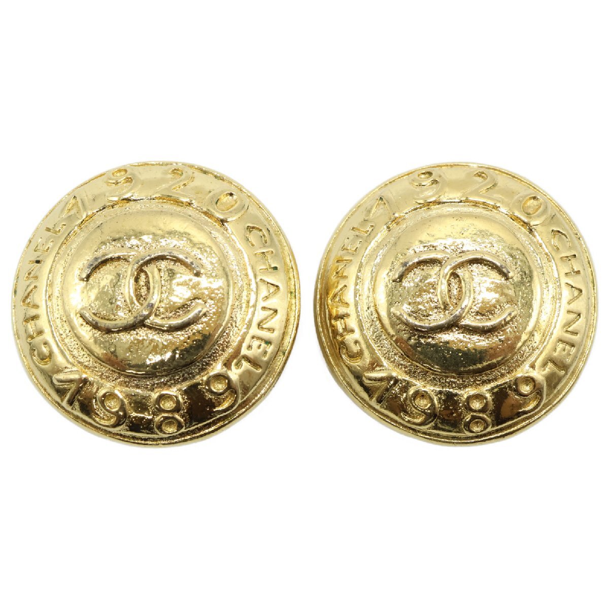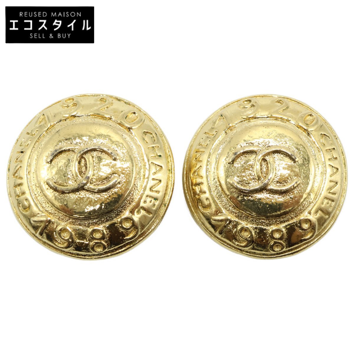 美品/ CHANEL シャネル ココマークラウンド イヤリング ゴールド レディース