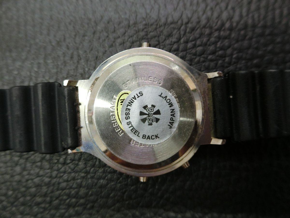 | 商品説明・コメント | クローネ コレクション KRONE COLLECTION UTSUNOMIYAの腕時計です。 型番は不明となります。 駆動方式はクォーツになりますが現在では動いておりません。 しかしながら電池交換をして動く保証は出来ません。 サイズはプッシュ含まずの横幅が38.3mm、ラグからラグ迄の縦の幅が48.4mm、厚みが11.3mm程度で御座います。 素人計測になりますので御参考迄にして下さい。 今となっては先ず手に入りませんし中々市場に出回る事が有りません。 状態は年式相応では御座いますがベースとしてや部品取り等に使って頂いても良いでしょうし年式相応でそのまま使っても良いかもしれません。 当時物のビンテージに理解の有る方にお勧め致します。 あくまでも部品取りやオーバーホール前提として下さい。 商品の適合や仕様の詳しくは御自身でお調べ頂きます様にお願い致します。 古い物になりますので経年の修理で非オリジナルの部品が使われている事も御座いますので全てに於いてオリジナルを保証する物では御座いません。 写真では御確認頂けない不具合等もある前提で原則ジャンク扱いにて御考慮下さい。 上記の通り、原則瑕疵担保責任はお受け致しませんので御了承下さいます様御願い致します。 上記の条件を御理解頂けない方の入札はお断り致します。 商品状態 | E | 注意事項 | ■ご質問がありましたらQ&A若しくはメール迄宜しくお願い致します。 | ■原則、中古ジャンク扱いの認識を頂ける方・極端に神経質で無い方・身勝手で無い方での御入札お願い致します。 ■例外なく汚れ、割れ、劣化、社外品による補修、油脂類切れ、折れ、腐食、破損、欠損、欠品、色褪せ、錆、機能的な欠陥は有るだろう前提でジャンク扱いでオーバーホールベースのノークレーム、ノーリターンでの取引条件とさせて頂きます。 ■入札の際は、商品説明・内容・写真を良く御確認の上、自己責任に於いて御入札下さい。 ■画像の色は写真の撮影状況により現物と異なる場合が御在います。 その旨を了承戴ける方のみの御入札をお待ち致します。 ■オークション終了から3日以内の御連絡頂けない場合は落札者都合にてキャンセルとさせて頂きます。 その際、yahooより自動的に『非常に悪い』の評価が付きますので御了承下さいませ。 ■商品の発送は入金確認後、4~7日のお時間を頂きます。 ■オークション終了から1週間以内の御入金でお願い致します。 ■新規のID方の悪戯入札防止の為、評価の無い新規の方・評価に著しく不安が在る方の御入札はお断り致します。 新規IDの方でどうしても入札したい方は質問欄より購入の意思を示して頂いた上で御入札下さい。 購入の意思を示さず入札頂きました場合は入札取り消しをさせて頂き今後、弊社商品への閲覧・入札は御断り致します。 ■Seller will not ship internationally. |