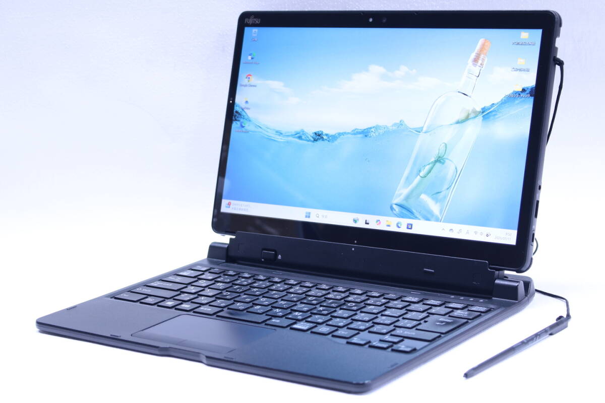 【メーカー】FUJITSU ノートパソコン タブレットPC 【型番/品名】ARROWS Tab Q738/SB with キーボード FARQ19001 【CPU】Core i5-8350U 1.70GHz / 4コア8スレッド / ターボ・ブースト2.0最大3.60GHz 【メモリ】8GB 【ストレージ】SSD 128GB 【ディスプレイ】13.3インチ FHD タッチパネル 解像度 1920x1080 ※カテゴリ--13.0~13.9インチ 【グラフィック】Intel(R)内蔵グラフィックス 【光学ドライブ】-- 【Webカメラ】搭載 【製造年月日】2019年09月 【無線LAN】搭載 【その他装備】Bluetooth (※その他インターフェースは画像とメーカーページ等でご確認ください。) 【OS】Windows11Pro-64bit 【Officeソフト】アプリ無し(Microsoft Web版Officeご利用可) 【ウイルス対策】Windows Defender、Windowsファイアウォール 【寸法/質量】幅:315mm/奥行き:200.9mm/高さ:9.7mm/重量:803g(仕様・構成により変動する場合あり) 【付属品】ACアダプタ、スタイラスペン(本体装着) 【メーカーページ】(スペック完全一致でない場合あり) https://jp.fujitsu.com/platform/pc/product/arrowstab/1801/q738sb/ https://jp.fujitsu.com/platform/pc/product/arrowstab/1801/q738sb/spec.html 【取扱説明書】(機種・型番完全一致でない場合あり)。 https://www.fmworld.net/biz/fmv/support/fmvmanual/arrows/q738sb.html