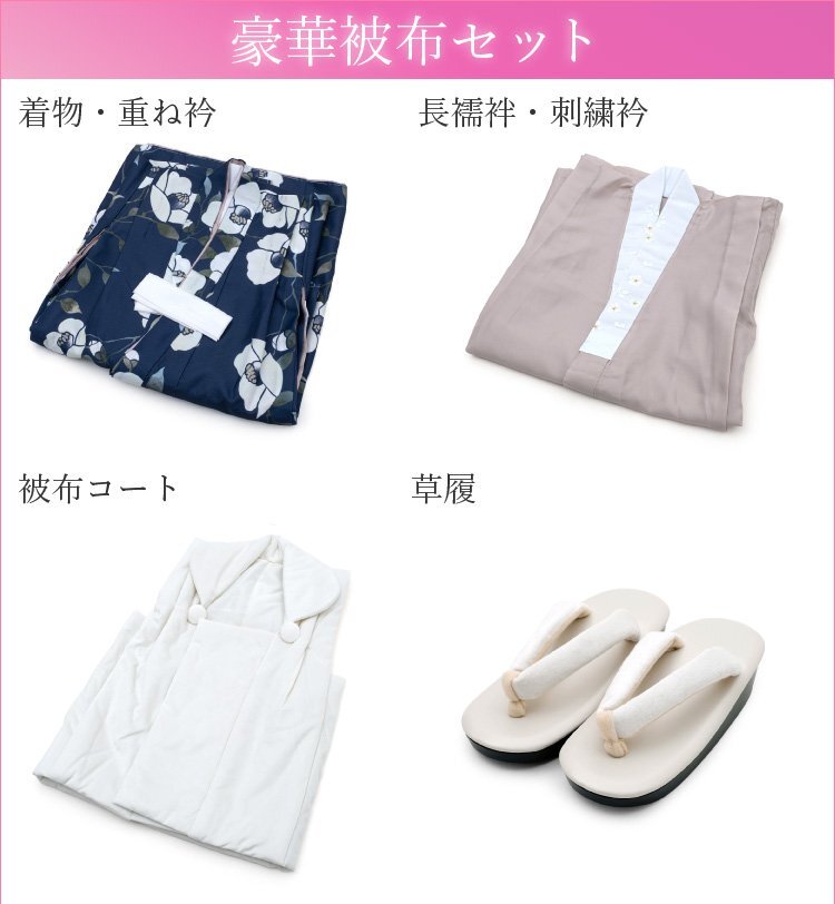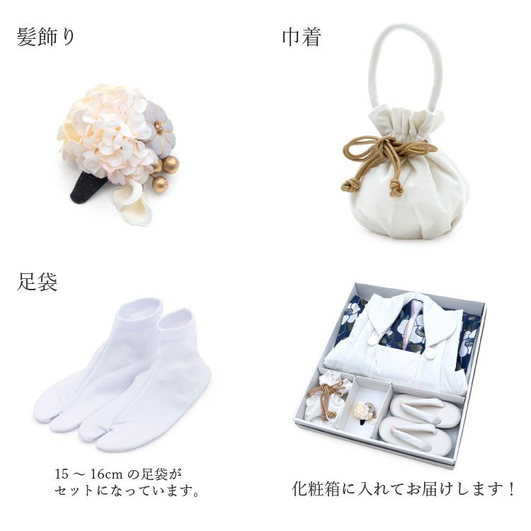 | 色 | 着物:紺 ネイビー 被布:ホワイト |