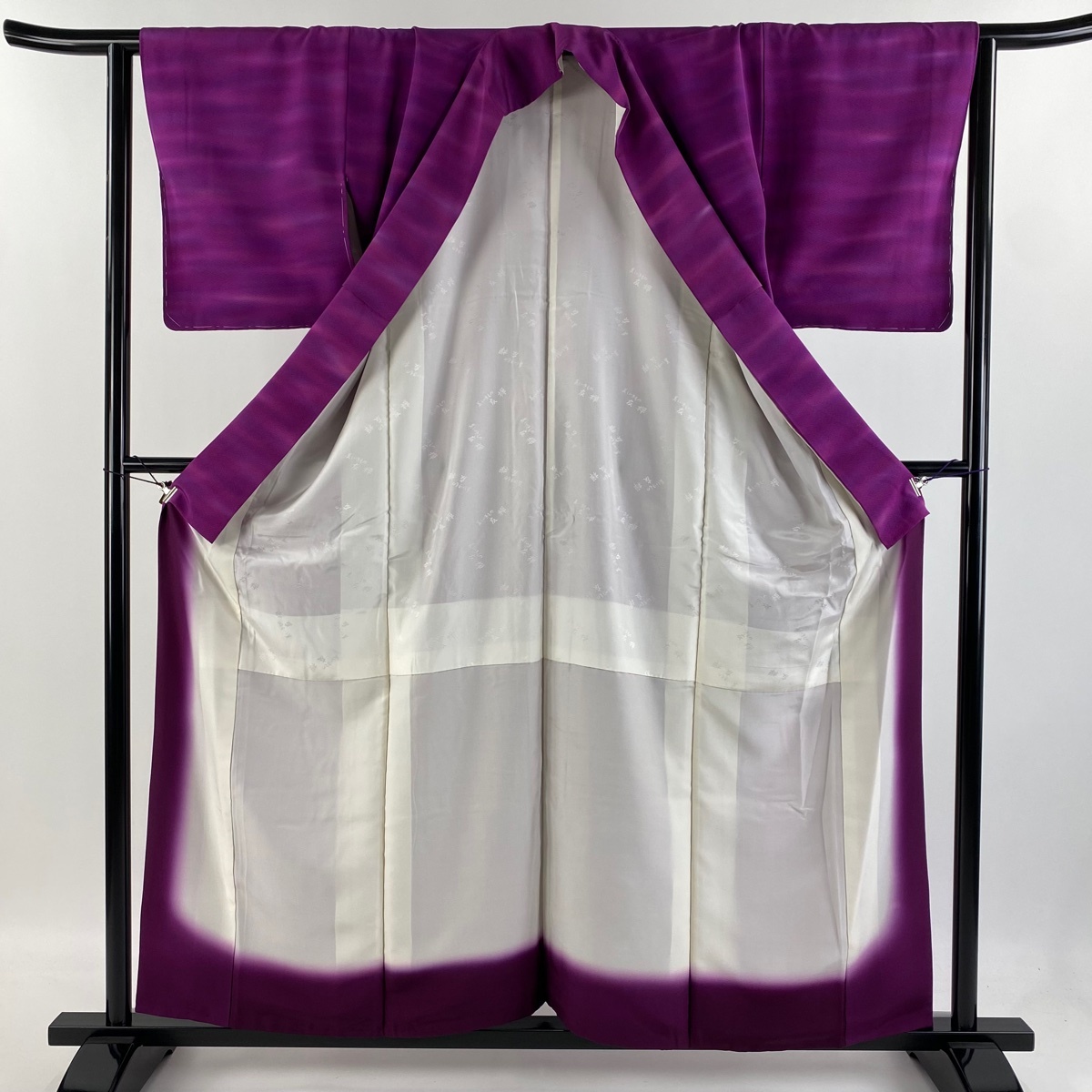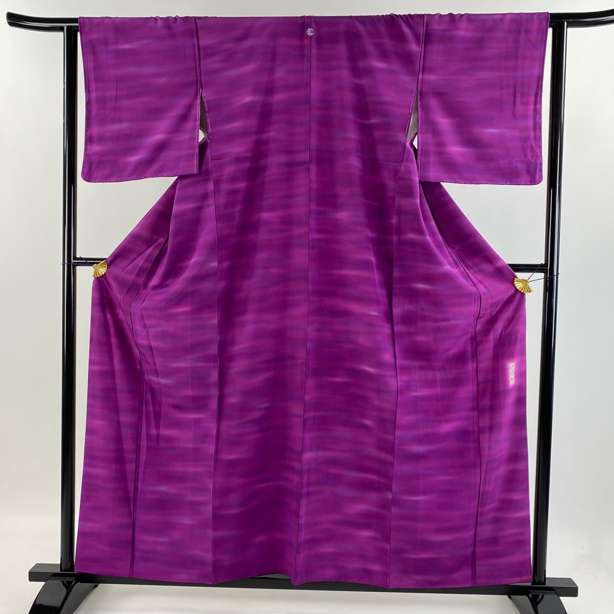 | 小紋 秀品 落款 本郷大田子 霞 ぼかし 紫 袷 身丈158.5 裄丈63 S 正絹 【中古】 |