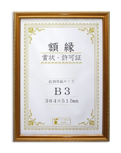 昔から愛用され続ける派手で目出度い金模様の伝統的な賞状額。 表面材には0.4mm厚のPETシートを、フレーム材には環境を配慮した樹脂(ポリスチレン)を使用し、非常に軽量で割れにくい。 吊り金具と吊り紐がついており壁に飾ることができる。 賞状以外にも許可証や免許証、認定書などの掲示にどうぞ。