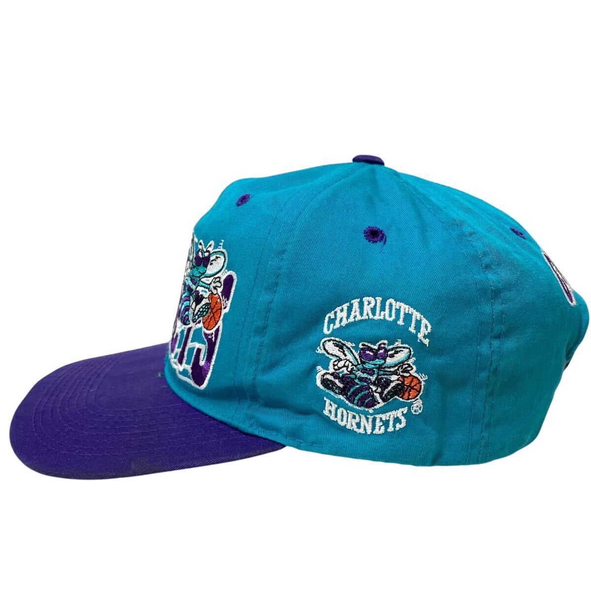 ■ 90s 90年代 ビンテージ NBA HORNETS ホーネッツ 刺繍ロゴ 切り替えし スナップバック キャップ ONE SIZE バスケ ■