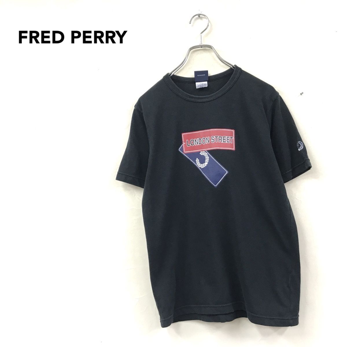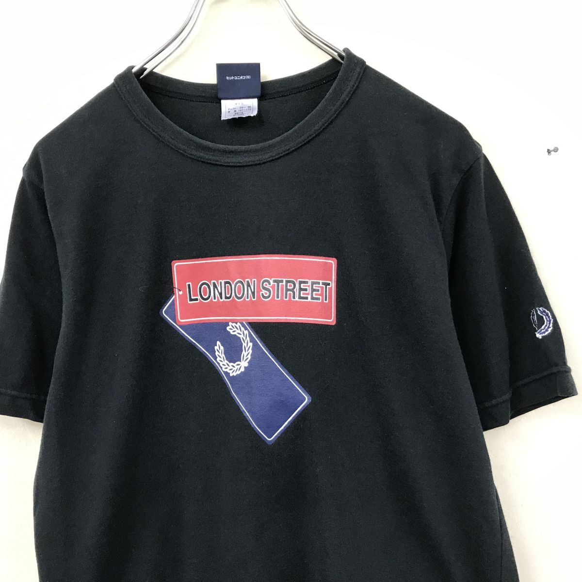 2H1315-D◆old◆ FRED PERRY フレッドペリー 半袖Tシャツ カットソー プリント ◆sizeM ブラック コットン 古着
