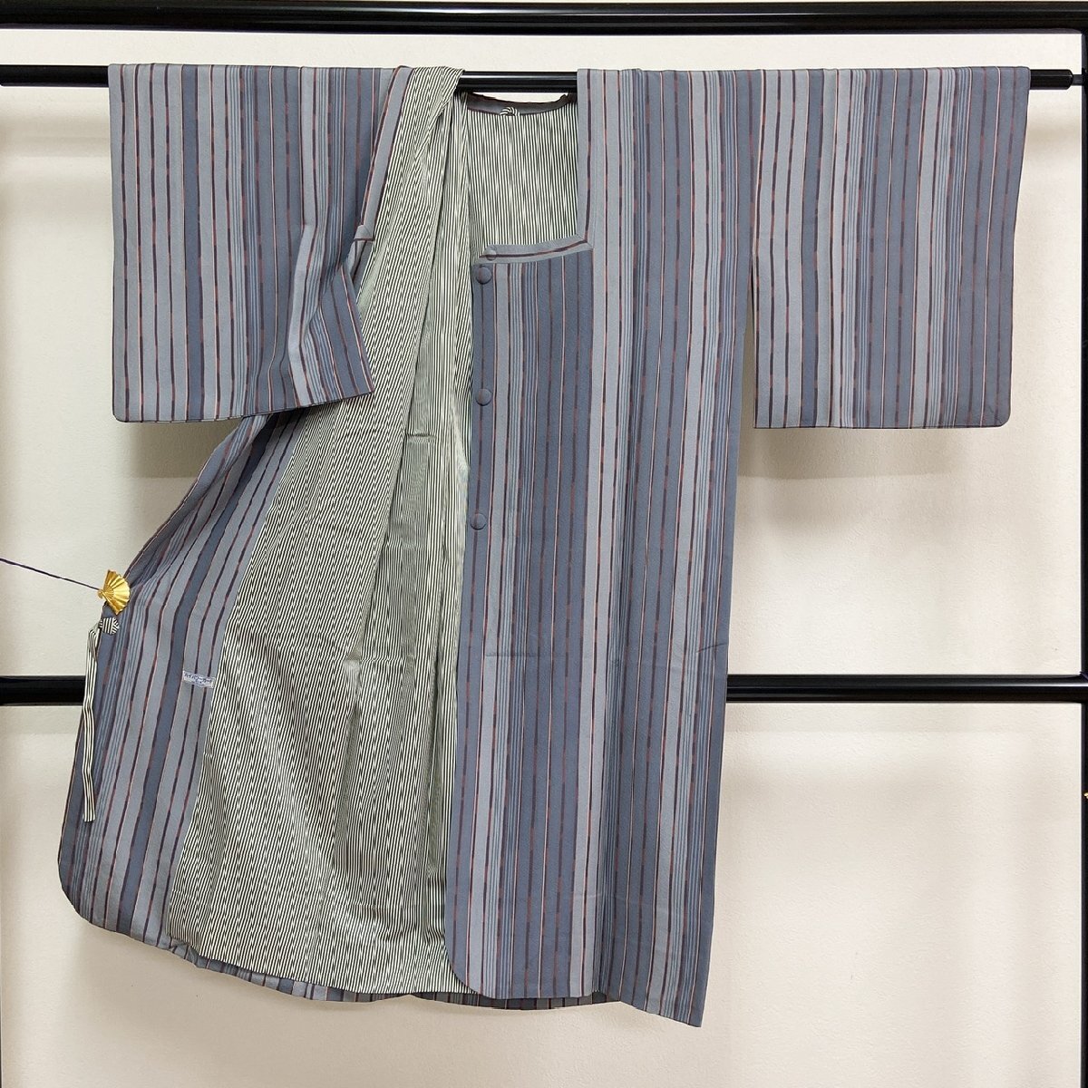 着物月花 縦縞 ストライプ 道行コート 和装コート 正絹 ガード加工 ki5584