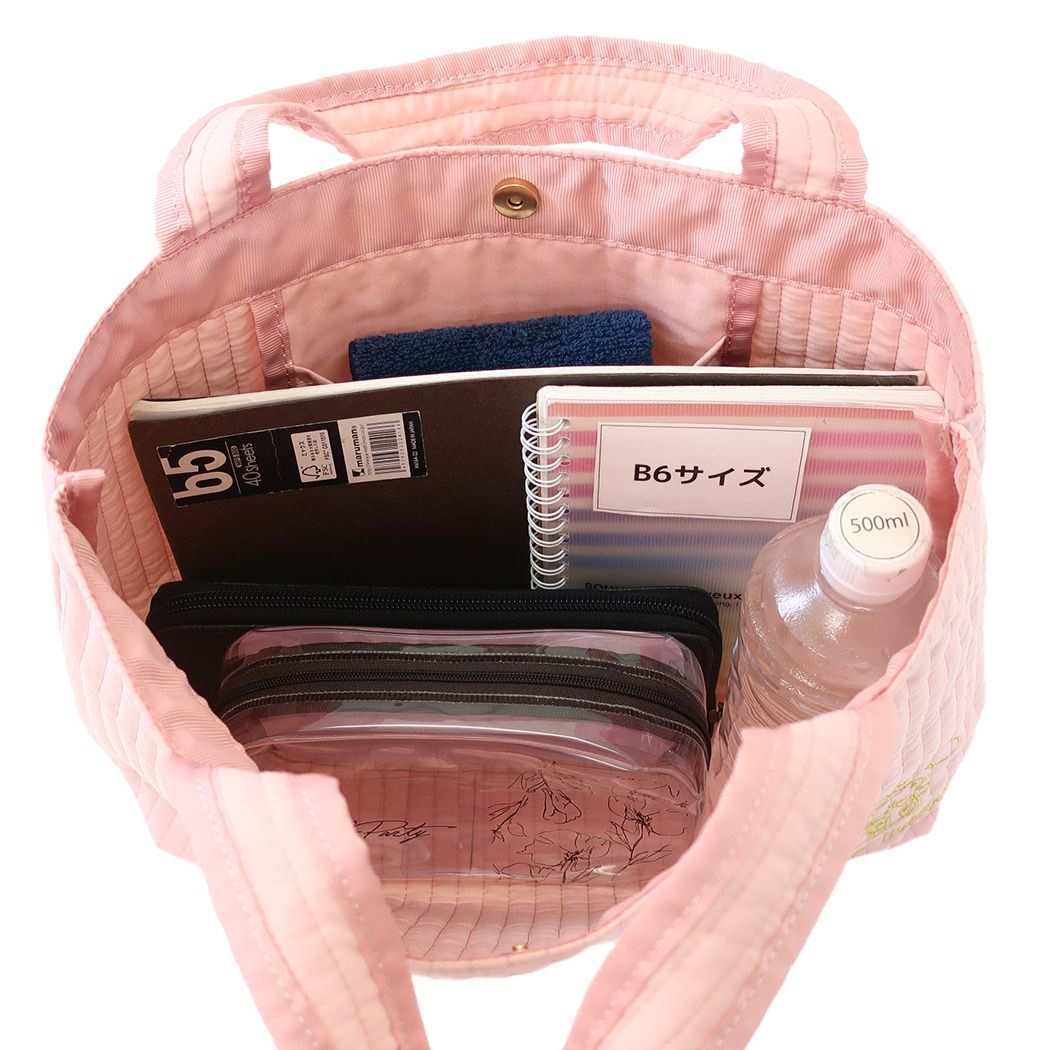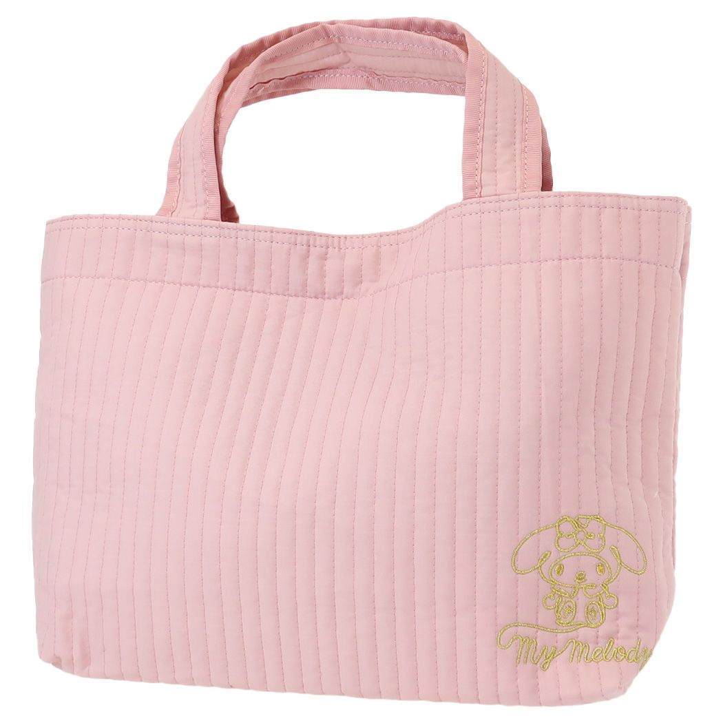 刺繍がおしゃれなヌビトートバッグ サンリオの大人気キャラ[mymelody/マイメロディ]グッズにまたまた可愛いnewアイテム登場ゴールド刺繍で大人っぽいデザインだから大人女子も使える可愛さ。内側にはポケットも付いて使いやすさもGOODかわいいキャラバッグいろいろあるのでお気に入りを探して下さいサイズ:390x90x250mm素材:綿ポリ混紡、不織布、中綿開閉:マグネットカラー/ピンク系